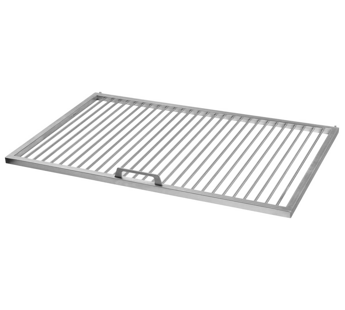 Parrilla fabricada acero inoxidable que proporciona un uso duradero sin deformación ni doblez. Con superficie fácil de limpiar para ahorrar tiempo en el mantenimiento. Sus dimensiones son 86,2 x 53,6 x 2 cm. Está disponible en modelo de varilla o con forma de V. Es compatible con las brasas abiertas de Pujadas.