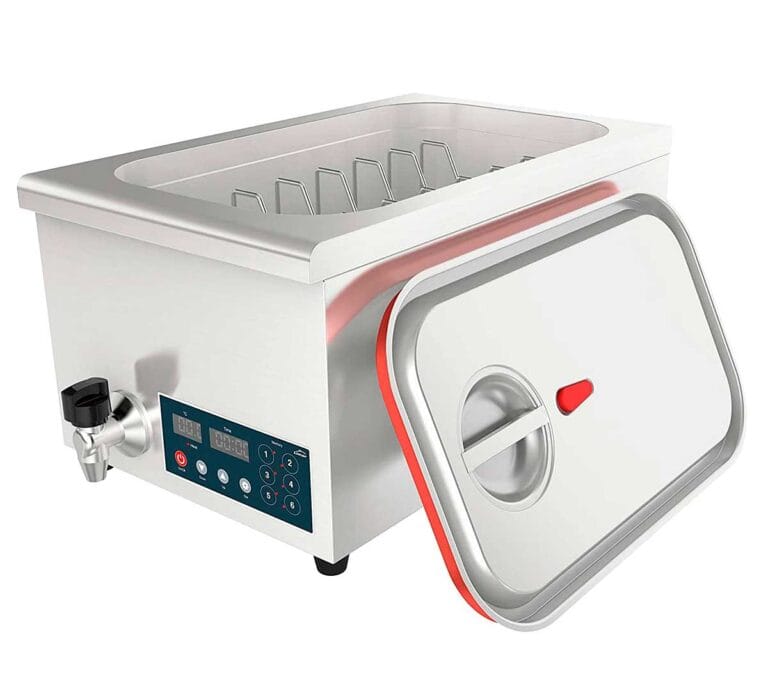 Este termocirculador mantiene la temperatura del agua uniforme y su rango de temperatura es de 5 ºC hasta los 95 ºC. Es apto para todo tipo de recipientes gastronorm y otras marcas.