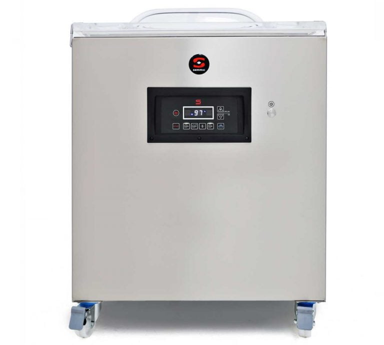 Envasadora al vacío Gama Sensor Serie 400 de Sammic, fabricada en acero inoxidable, con control de vacío. Esta envasadora permite prolongar el tiempo de conservación de los alimentos crudos o cocinados sin que se resequen ni mezclen sabores u olores.