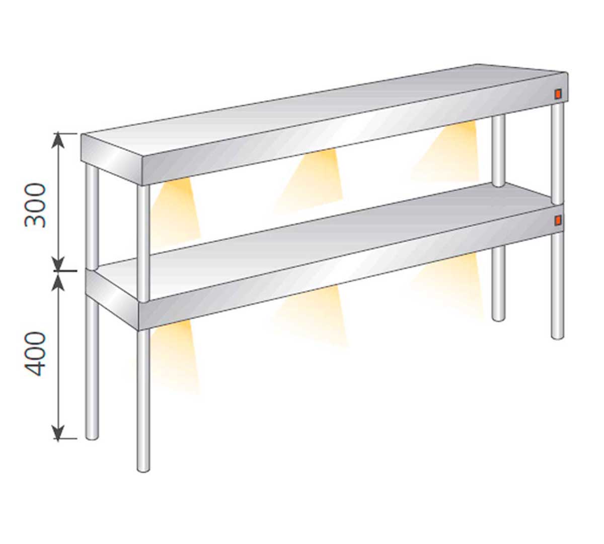 La Estantería Sobremesa con Luz y Calor ESMC 2 Estantes de Edenox tiene lámparas halógenas para iluminar y mantener la temperatura de los alimentos recién cocinados.