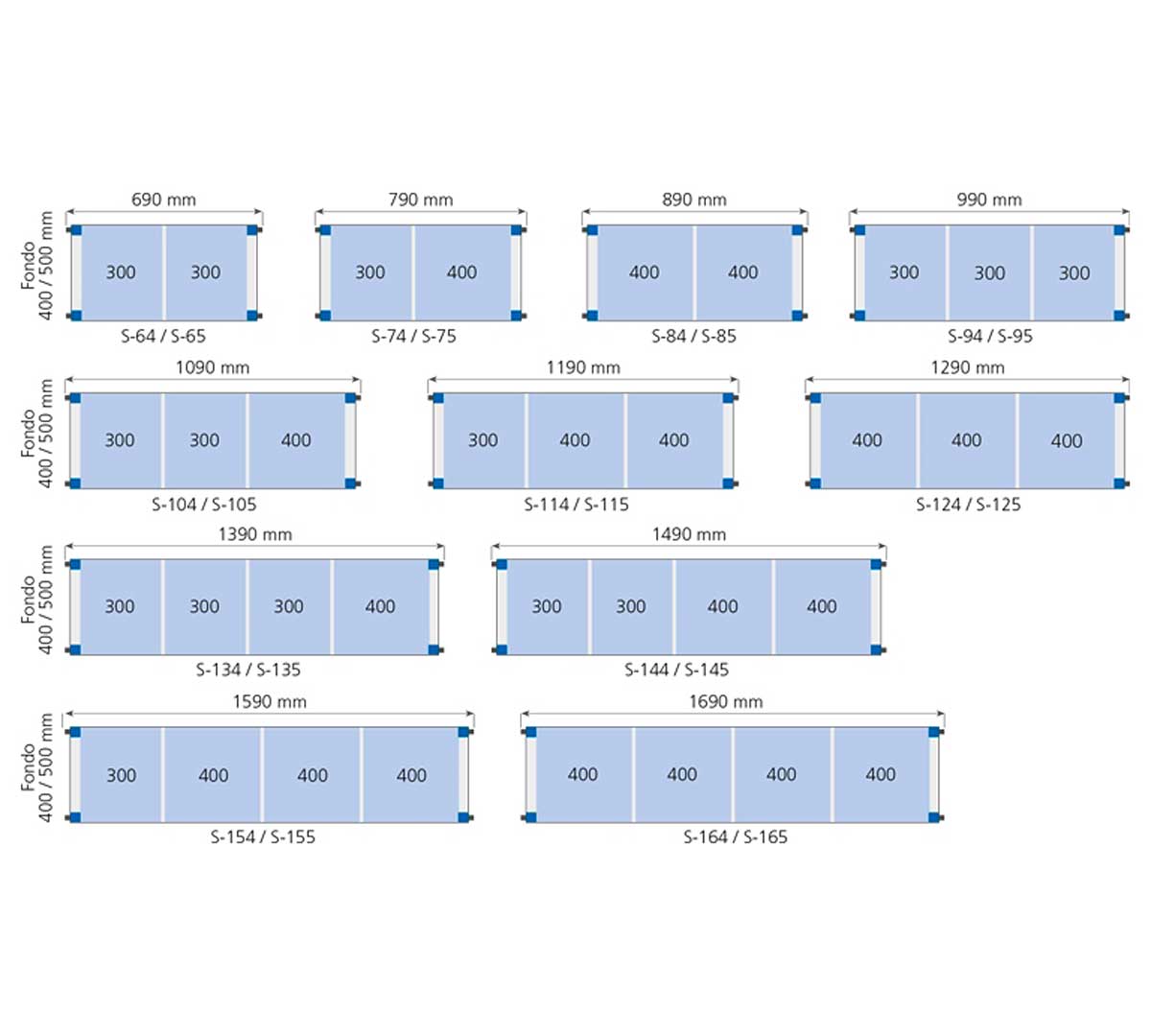 Está disponible en 11 modelos con una longitud de 60 a 160 cm.