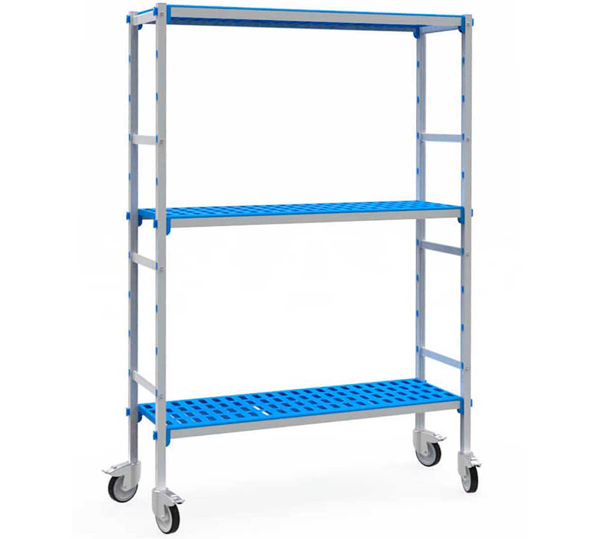 El Conjunto Completo con Ruedas de Pujadas está fabricado en aluminio con estantes en polietileno.