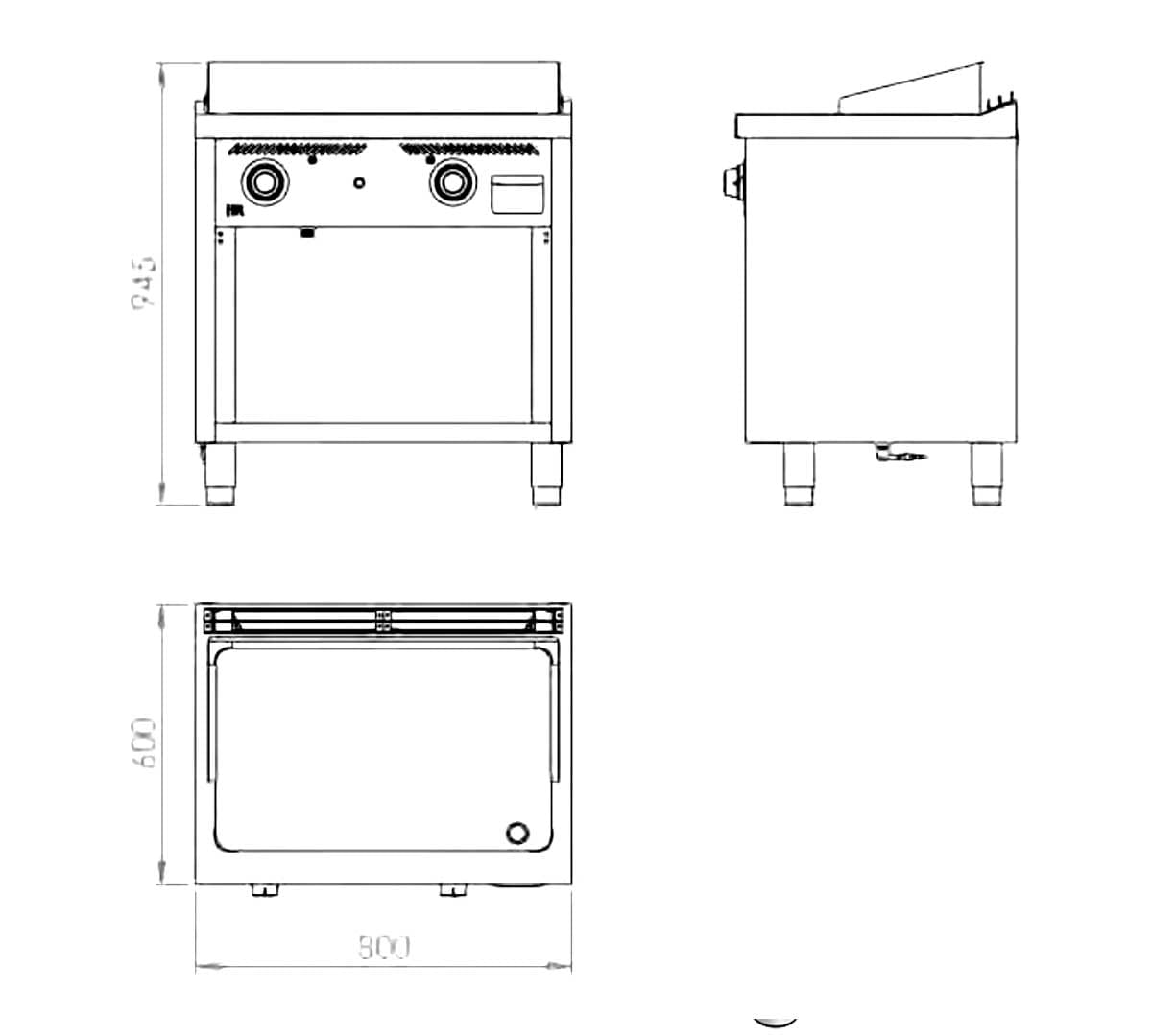 El Fry Top a Gas de Acero Serie 600 de Pie FT-E de Fainca HR  tiene termopar de seguridad y cajón recoge grasa extraíble. La placa es lisa, está fabricada en acero rectificado y tiene un espesor de 15 mm.