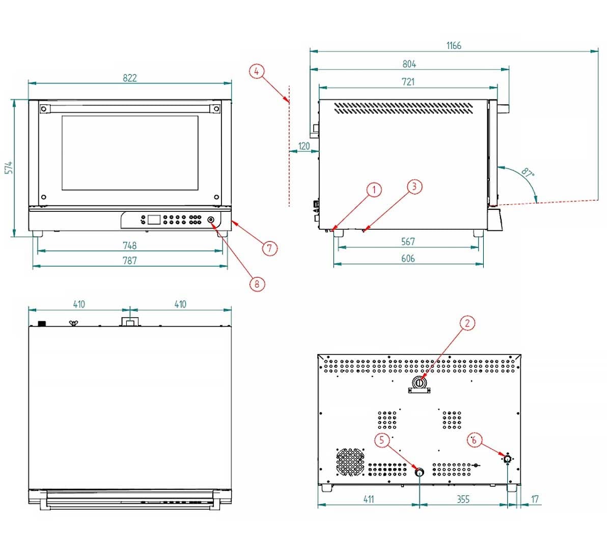Capacidad para 4 bandejas de 600 x 400 mm o 4 bandejas GN 1/1, lo que permite una gran flexibilidad en la preparación de diferentes tipos de alimentos.