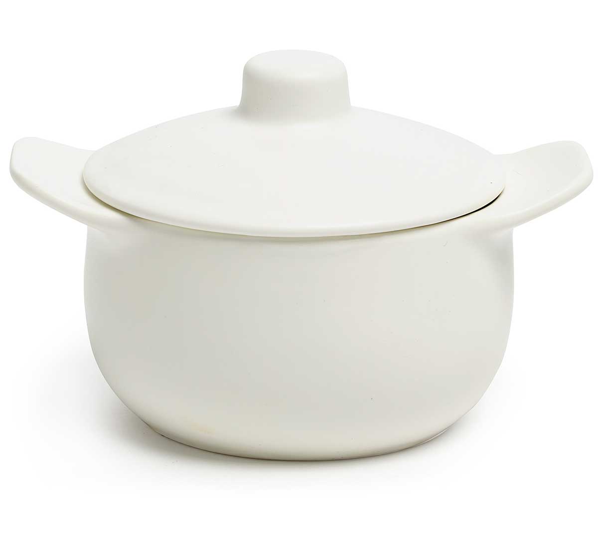 Olla con tapa en versión mini fabricada en porcelana blanco mate de alta calidad.