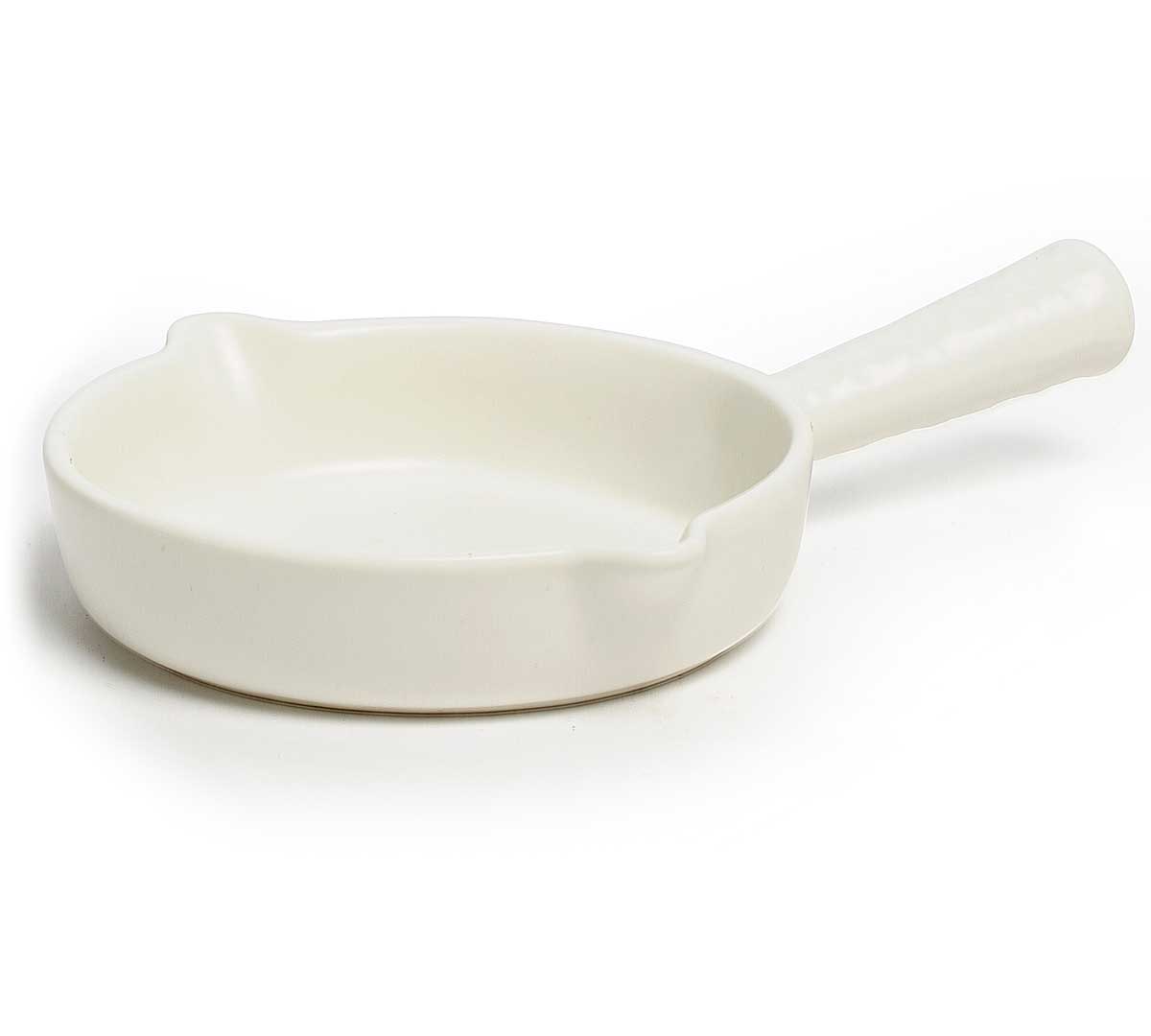 Sartén con mango en versión mini fabricada en porcelana blanco mate de alta calidad.