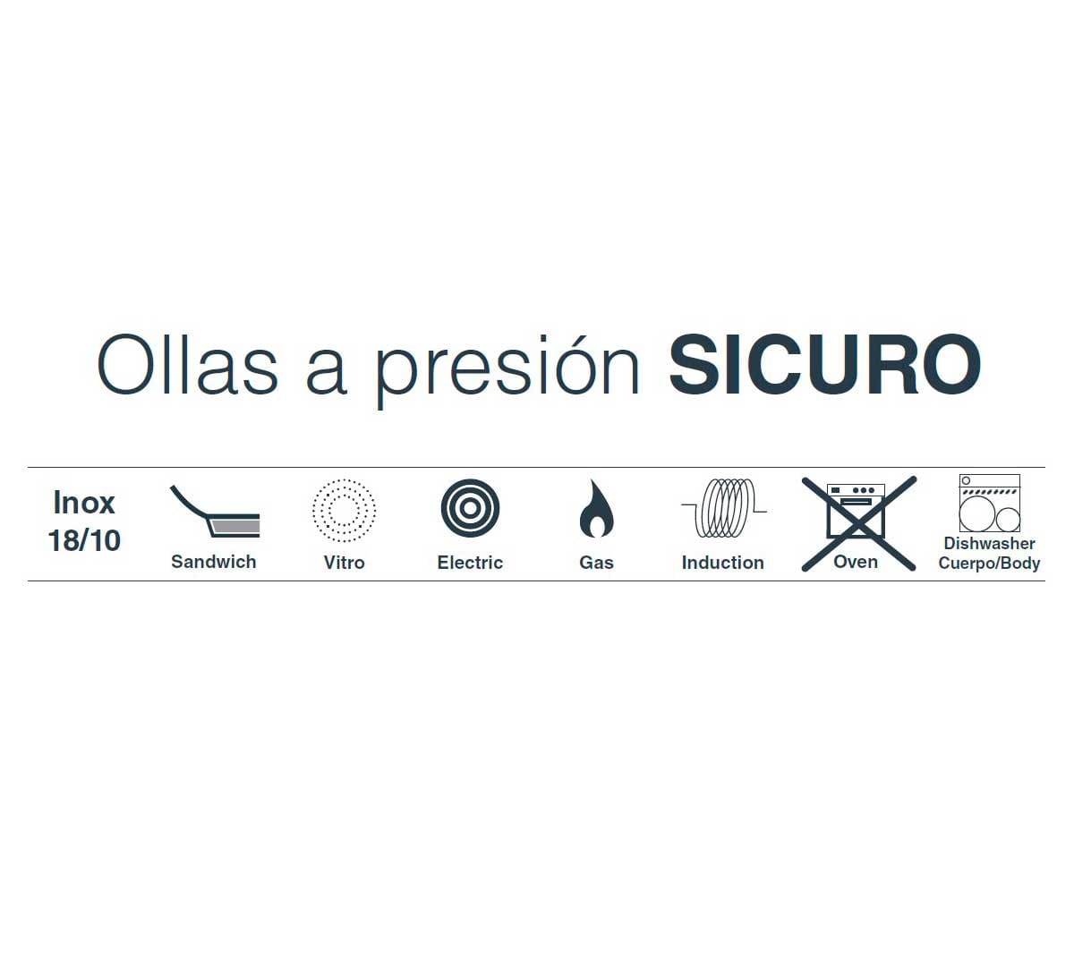 La Olla a Presión Sicuro de Lacor está fabricada en acero inoxidable 18/10. Este material se caracteriza por su durabilidad y resistencia. Cuenta con certificado 2014/68/UE.