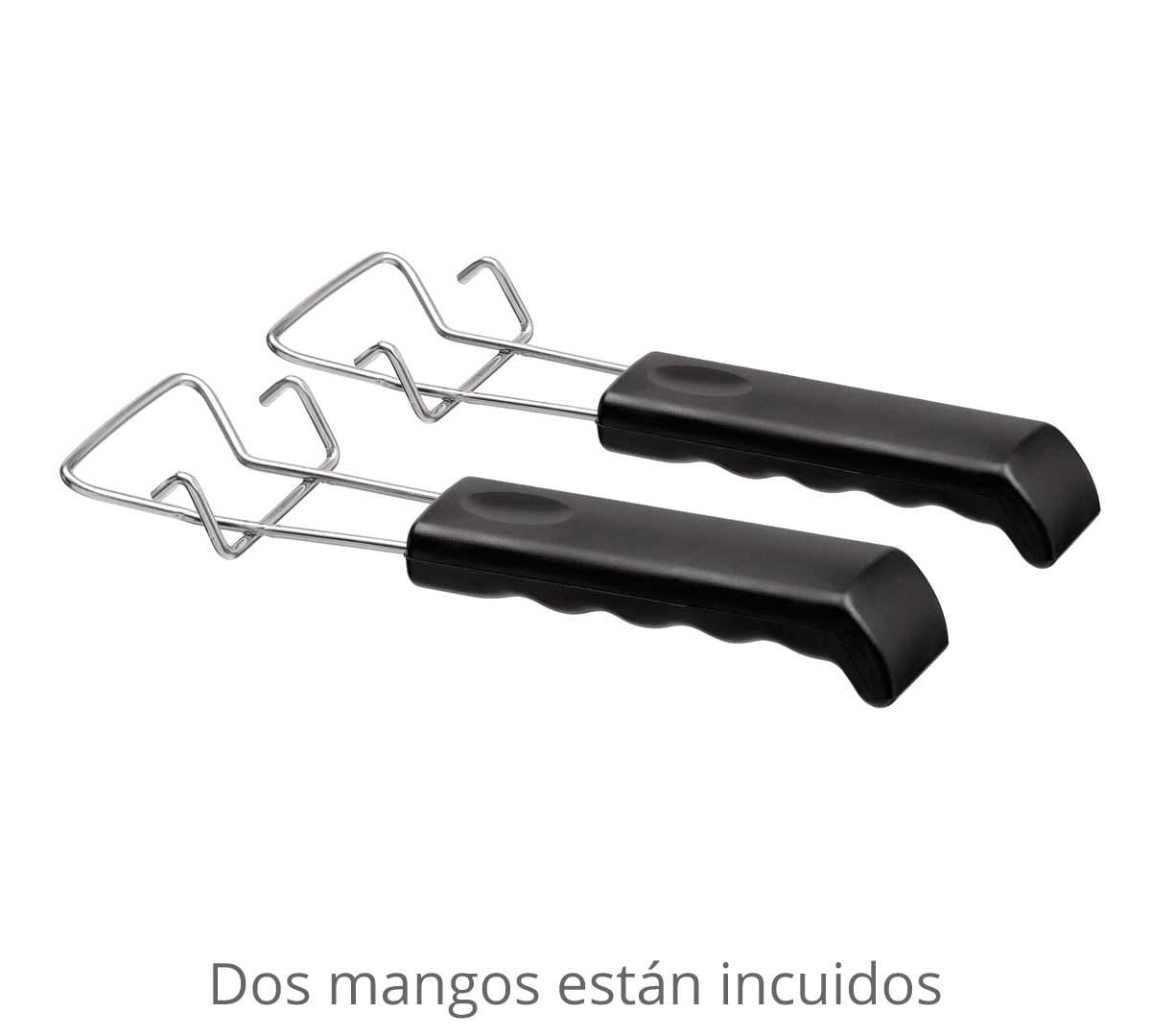 Incluye: 1 parrilla ajustable en alturas y 2 mangos.