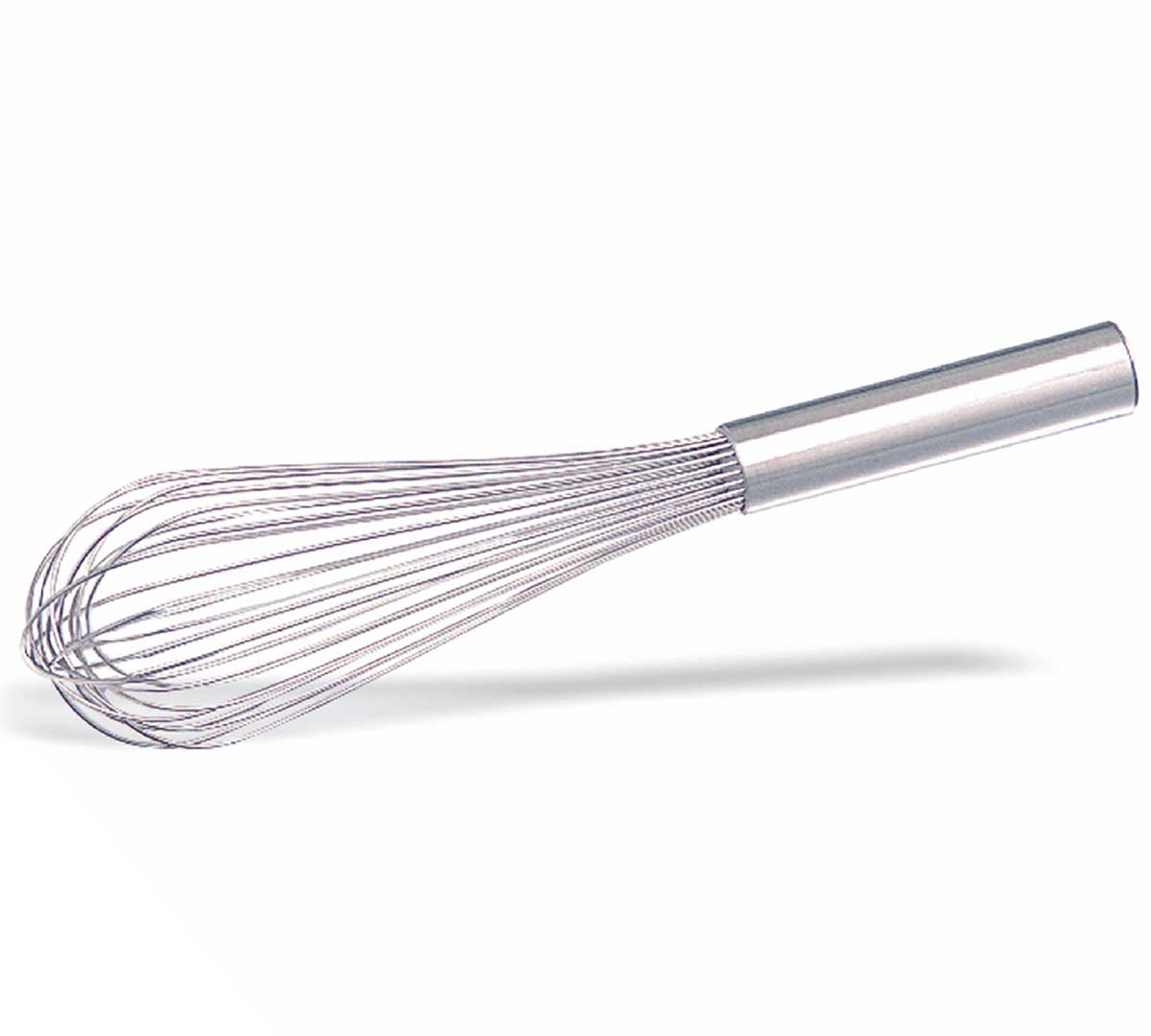 Batidor de acero inoxidable con 10 varillas de 1,8 mm de grosor. Ideal para mezclar líquidos y preparar salsas, de forma rápida y cómoda en la cocina profesional.
