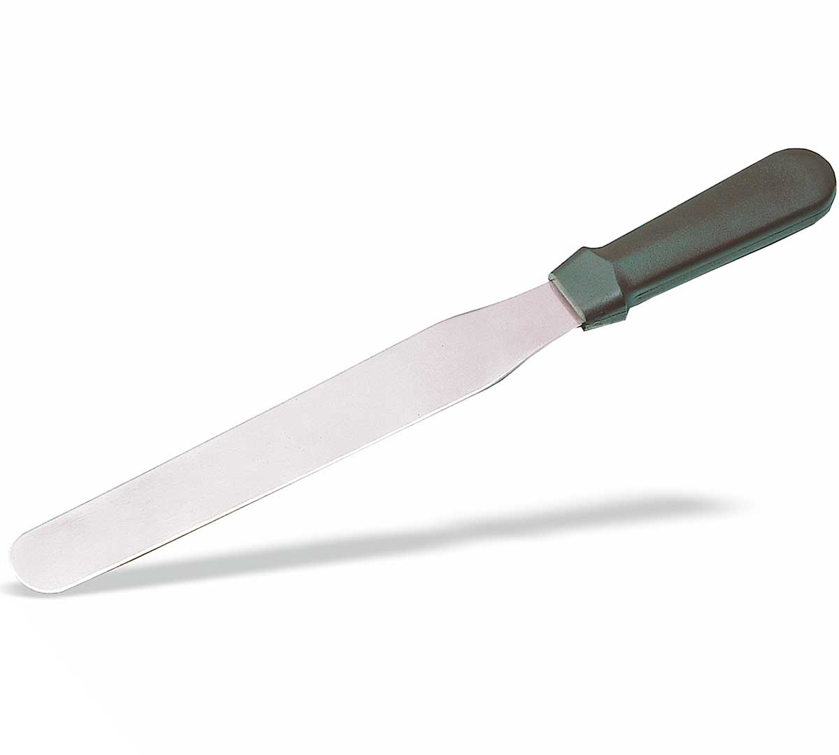 Espátula recta, con hoja larga rectangular de acero inoxidable. Dispone de mango ABS. Ideal para cubrir los pasteles de crema o fondant. Está disponible en 3 modelos.