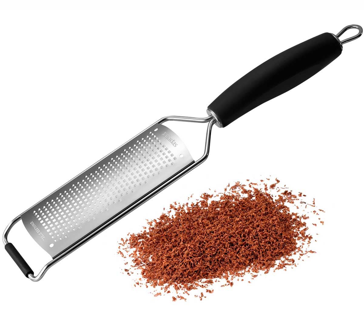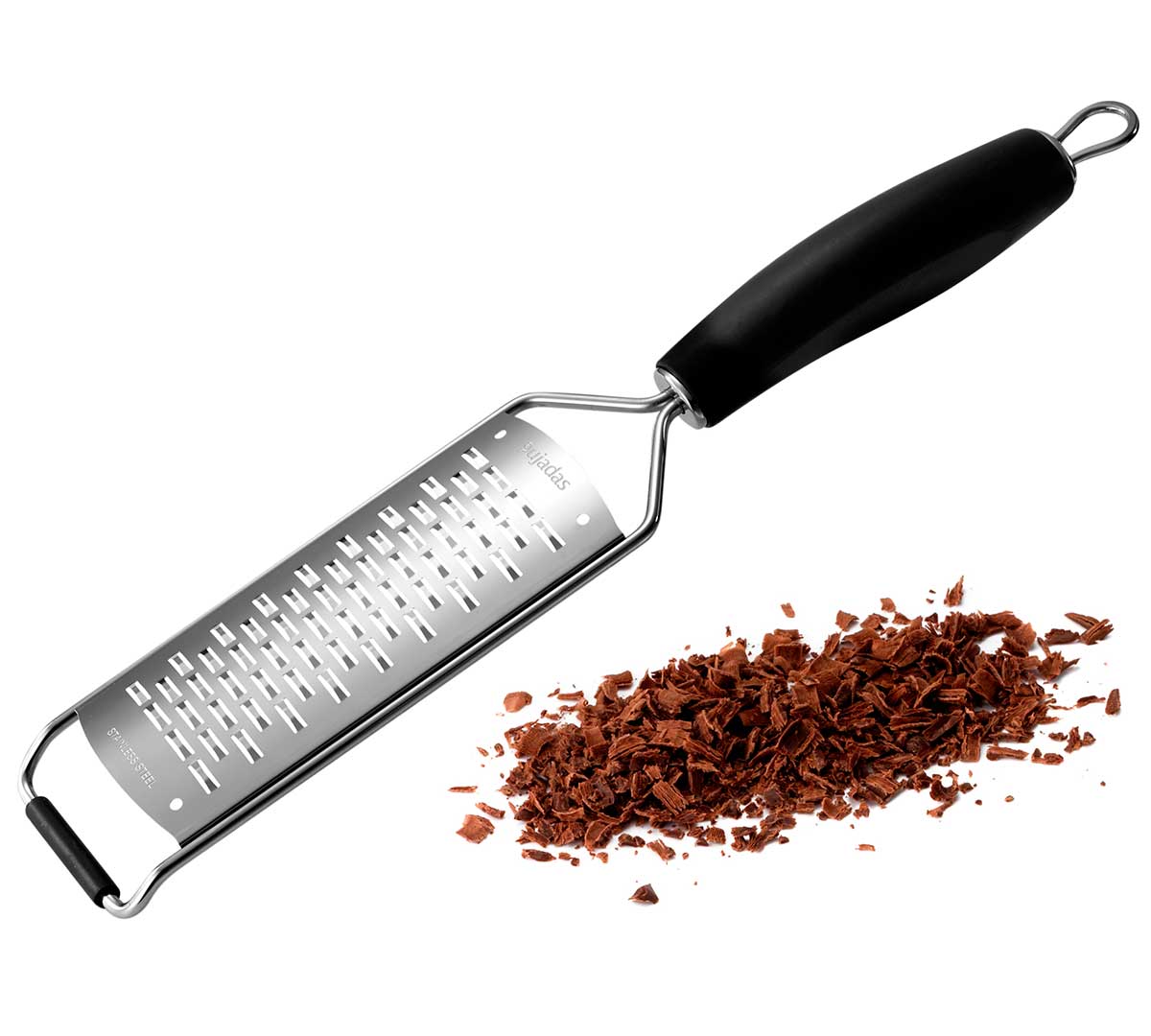 Rallador fabricado en acero inoxidable con mango ergonómico. Dispone de borde antideslizante. Es ideal para el rallado de cítricos y otras frutas o verduras. Está disponible en cuatro modelos, con rallado fino, doble navaja, tiras largas y grueso.