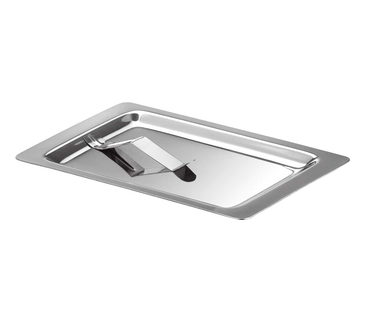 Bandeja para cambio con forma rectangular y fabricada en acero inoxidable. Dispone de una pinza para sujetar el ticket o el dinero. Recomendada en restaurantes, cafeterías, bares, etc.