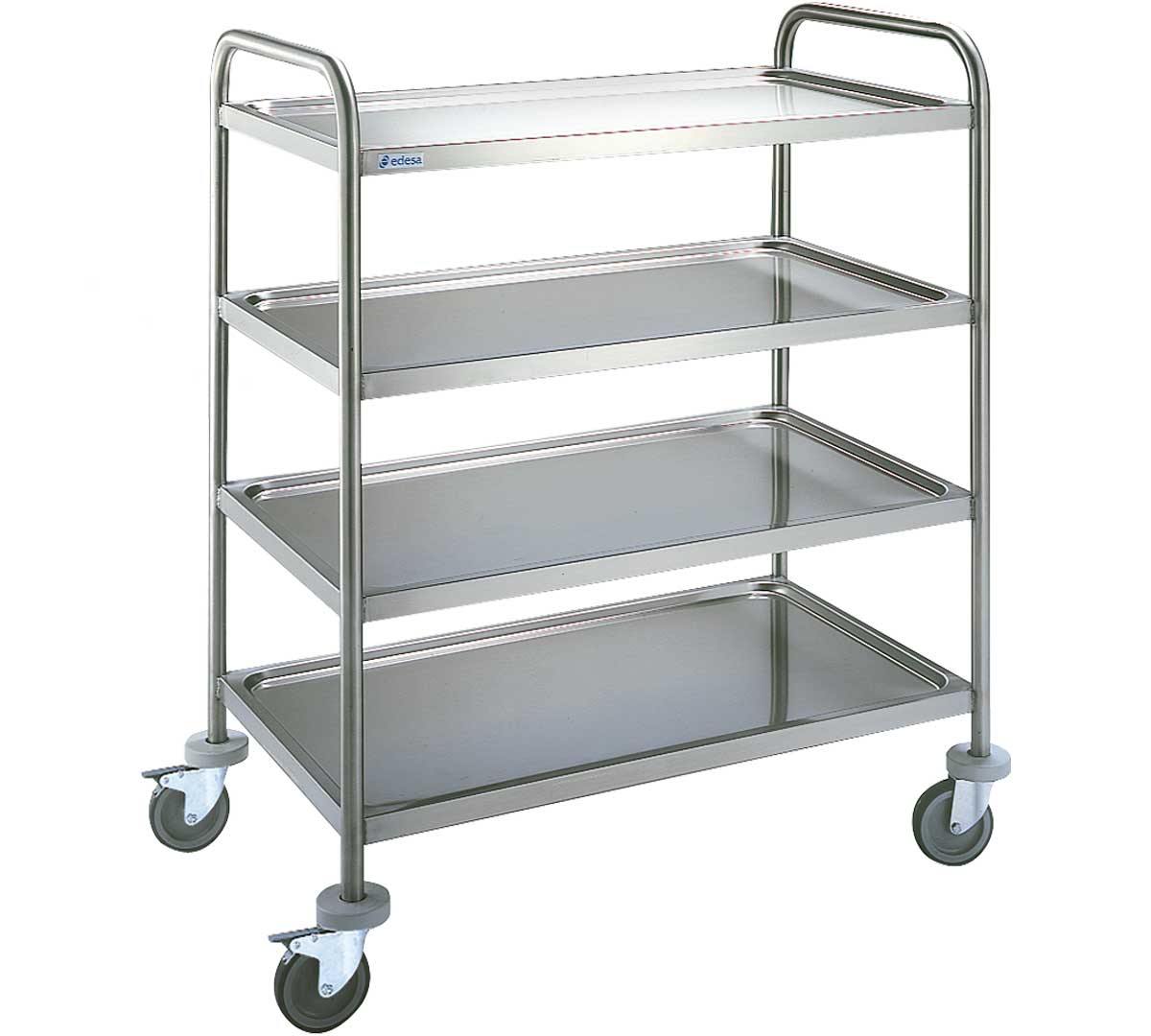 El Carro de Servicio 4 Estantes de Edenox tiene una estructura soldada y está fabricado en acero inoxidable AISI-304 18/10. El modelo CER1064 no admite los accesorios opcionales.