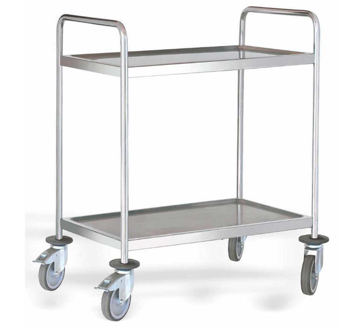 El Carro de Servicio con 2 Estantes de Pujadas está fabricado en acero inoxidable y permite una carga máxima de hasta 160 kg.