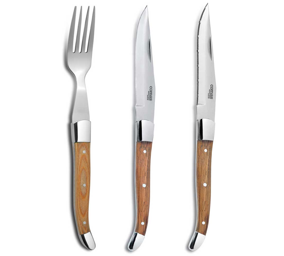 Los Cubiertos Chuleteros ALPS de Comas están especialmente diseñados para cortar carne, con hoja afilada de acero inoxidable.