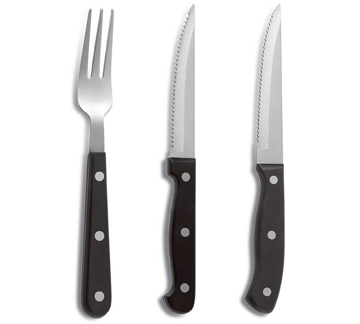 Los Cubiertos Chuleteros Mango Negro de Comas están especialmente diseñados para cortar carne, con hoja serrada de acero inoxidable.