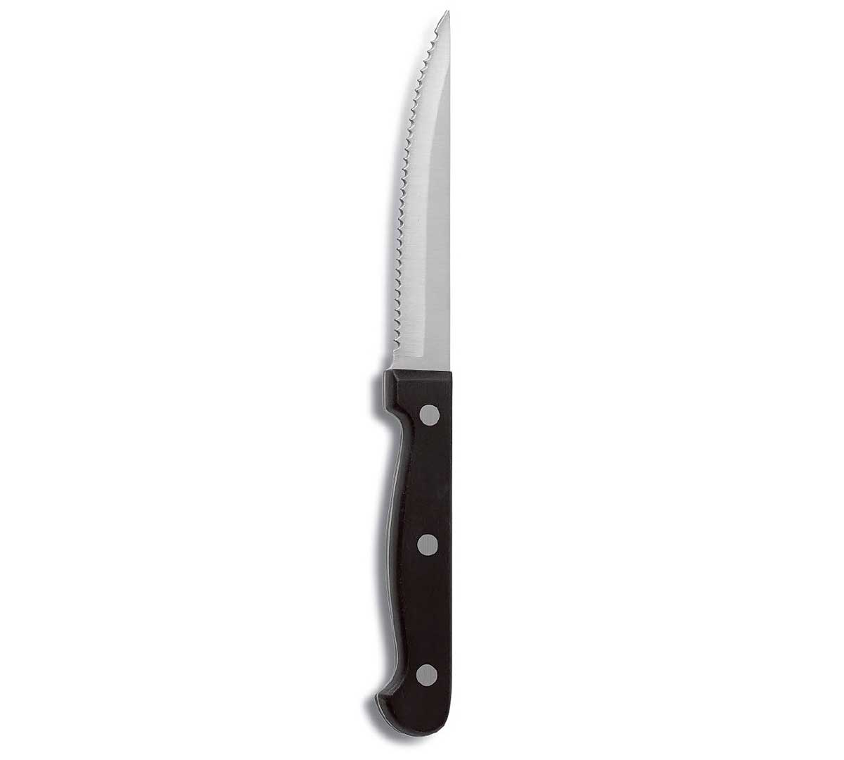 Cuchillo chuletón negro, con una longitud de 23,2 cm. Fabricado en acero inoxidable 420.