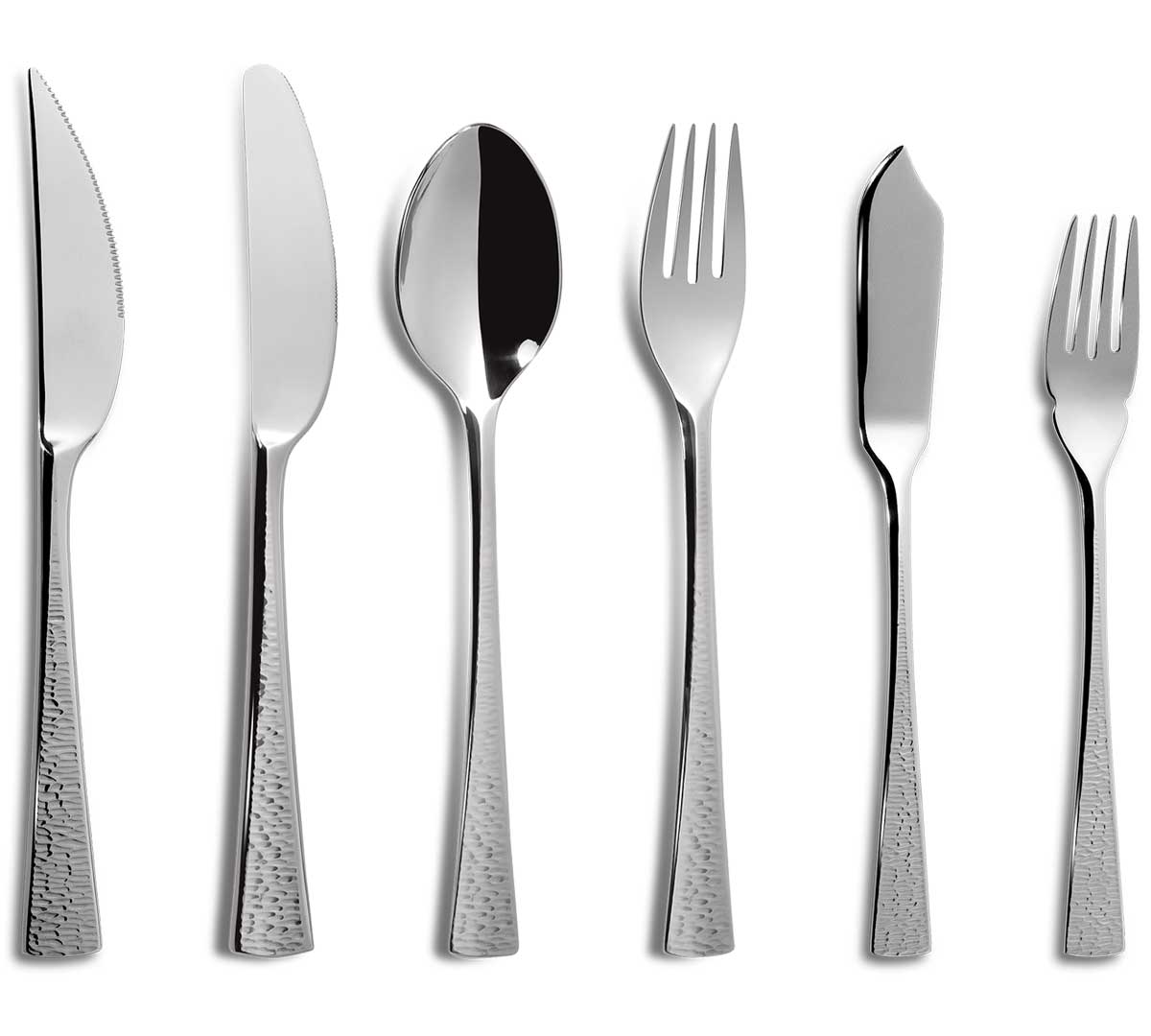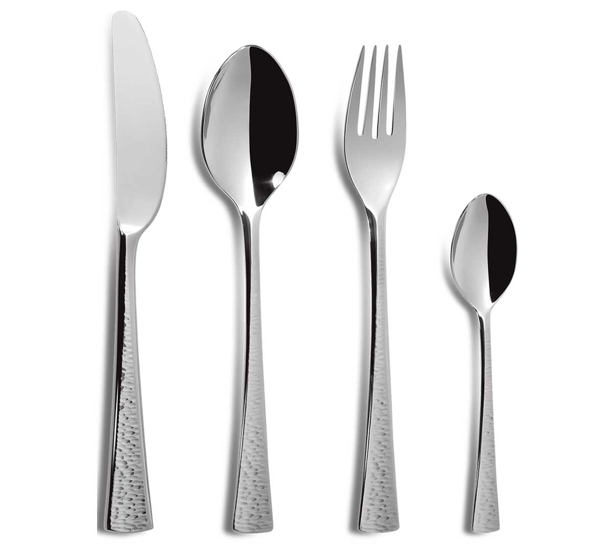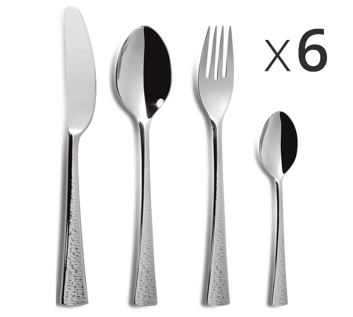 El juego de 24 piezas incluye: 6 tenedores de mesa, 6 cucharas de mesa, 6 cuchillos de mesa y 6 cucharas de café.