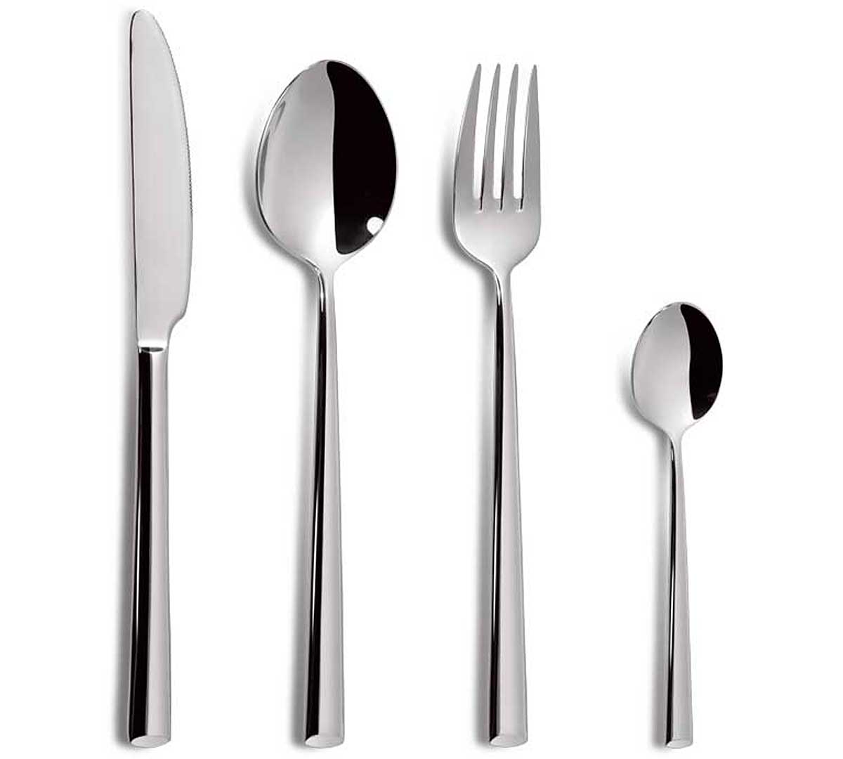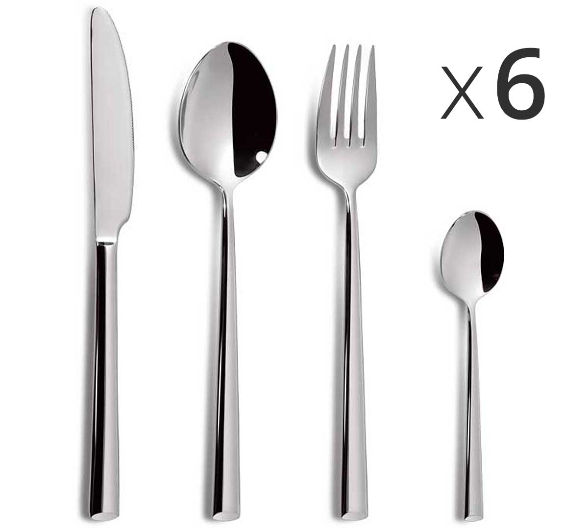 El juego de 24 piezas incluye: 6 tenedores de mesa, 6 cucharas de mesa, 6 cuchillos de mesa y 6 cucharas de café.