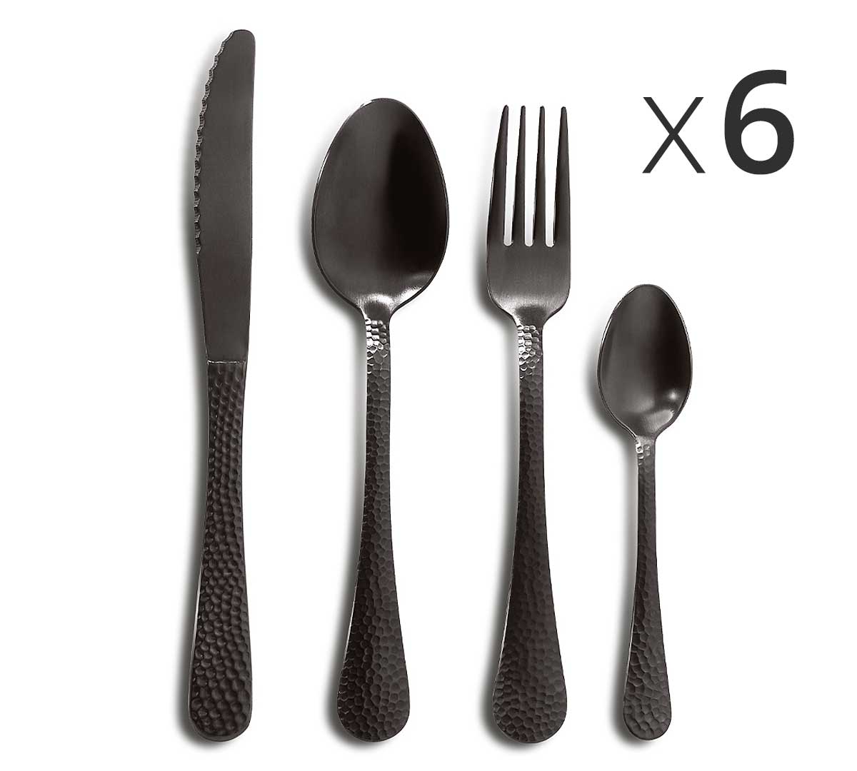 El juego de 24 piezas incluye: 6 tenedores de mesa, 6 cucharas de mesa, 6 cuchillos de mesa y 6 cucharas de café.