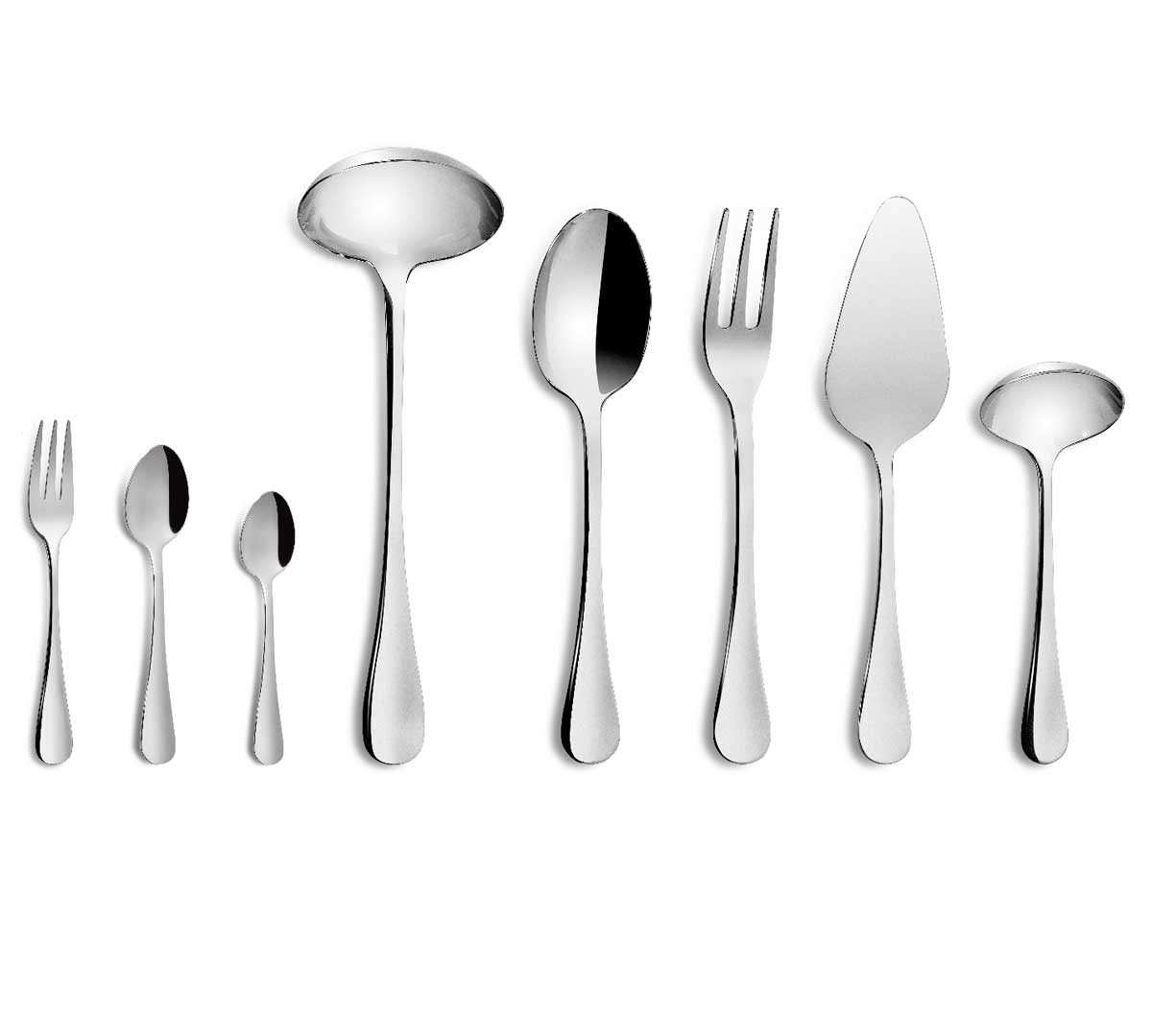 Cada tipo de cubierto se puede adquirir en packs de 12 unidades, excepto el cazo de sopa, cazo de salsa, la pala repostería, el tenedor de servir y la cuchara de servir que se venden en pack de 10 unidades.