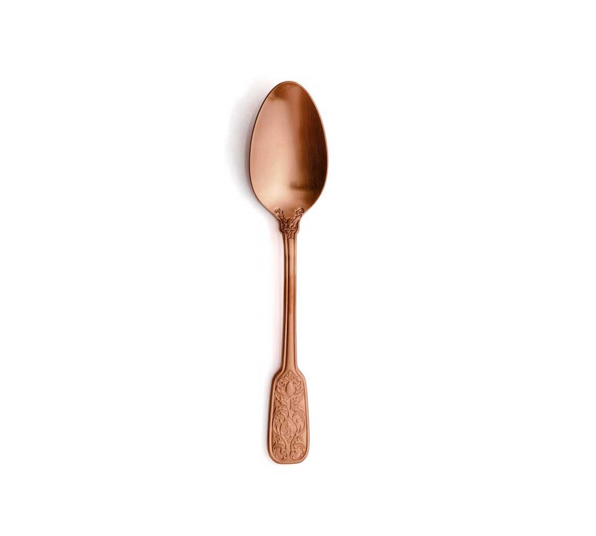 Estos cubiertos cobrizos pertenecen a la gama Versailles. Que está compuesta de una paleta de colores en plata, oro, negro y cobre.