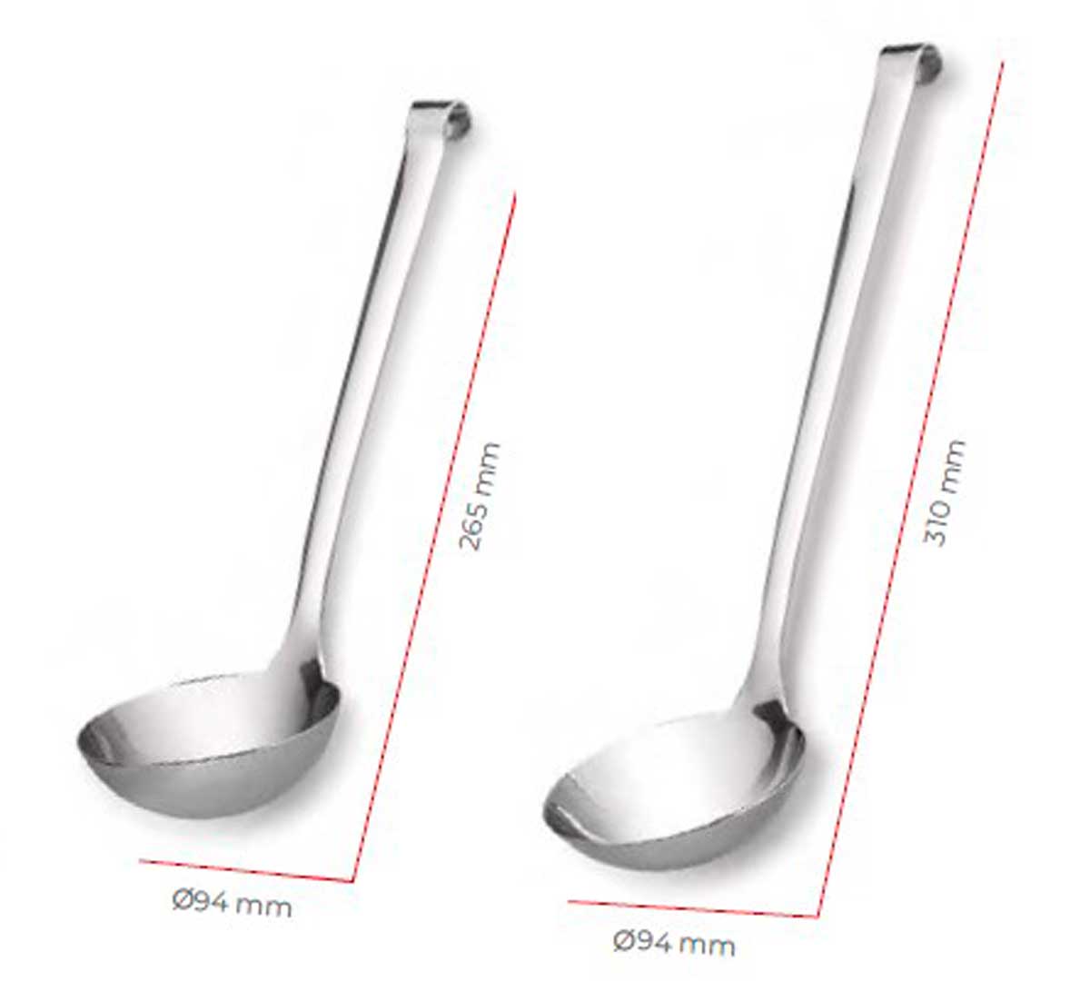 El Cazo Sopa Elegant de Comas tiene el mango diseñado especialmente para colgar o apoyar en las bandejas de buffet.
