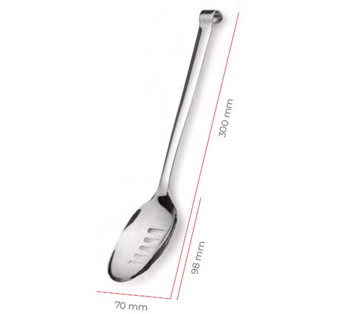 La Cuchara Ranurada Elegant de Comas tiene el mango diseñado especialmente para colgar o apoyar en las bandejas de buffet.