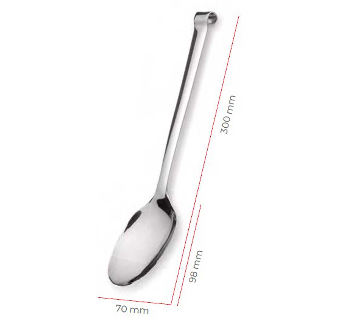 Cuchara para servir fabricada en acero inox 18/10, con níquel. El mango está diseñado especialmente para colgar o apoyar en las bandejas de buffet. Con acabado espejo. Se vende en pack de 10 unidades.