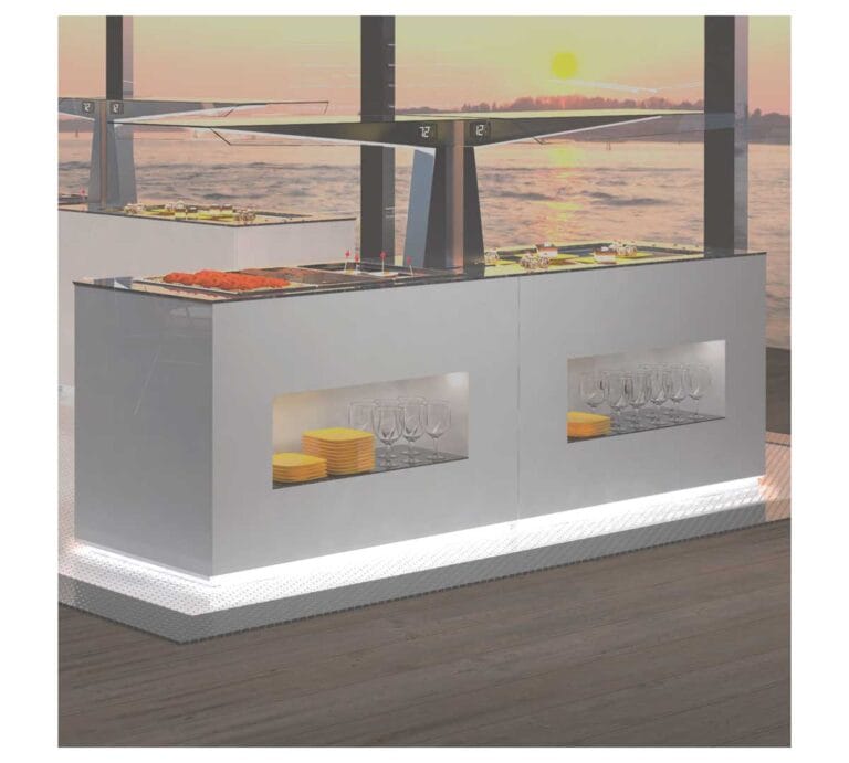 Puedes elegir en la Línea Buffets módulos de servicio, autoservicio, bases neutras y módulos de postre.