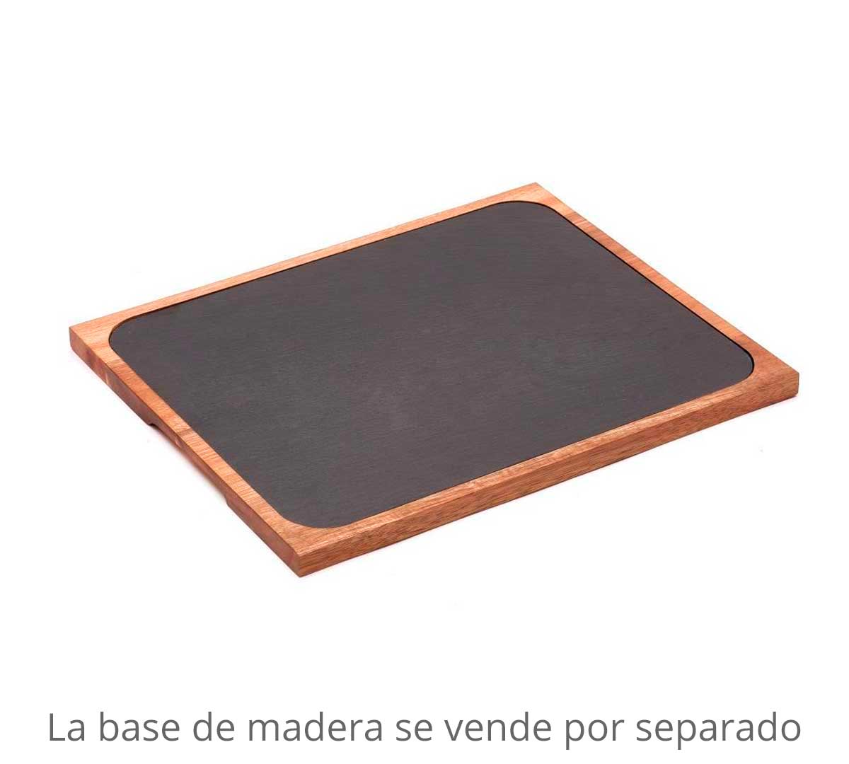 Tabla de pizarra diseñada para presentación en buffet y catering. De tamaño gastronorm GN 1/2. Es compatible con las bases de madera para pizarra y las cajas de madera GN 1/2