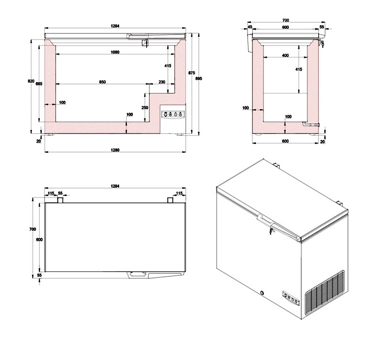 Sus dimensiones exteriores son 128,4 x 70 x 89,5 cm.