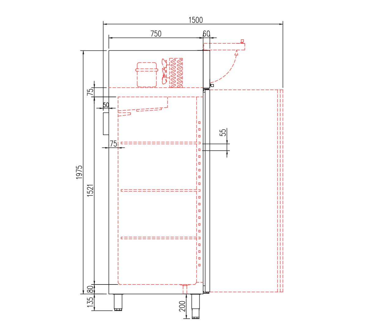 Puertas de apertura reversible, con sistema de cierre automático y burlete magnético (permanece abierta al superar los 90° de apertura).