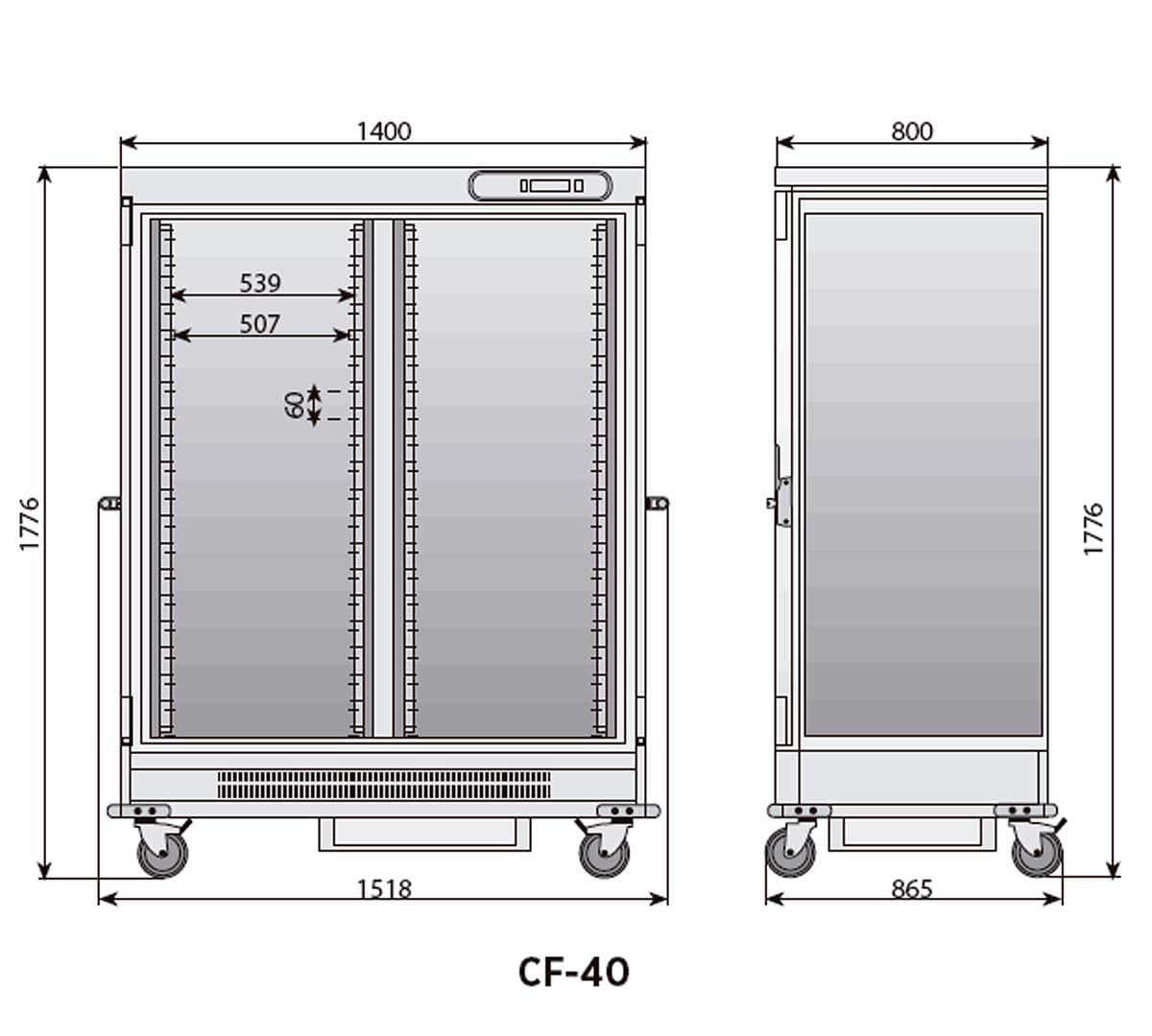 Este carro porta bandejas CF-40 HC mantiene una temperatura de trabajo de +2 a +8 ºC. Diseñado especialmente para el transporte y la conservación de alimentos en la industria de la hostelería. Incluye 10 estantes de varilla GN 2/1.
