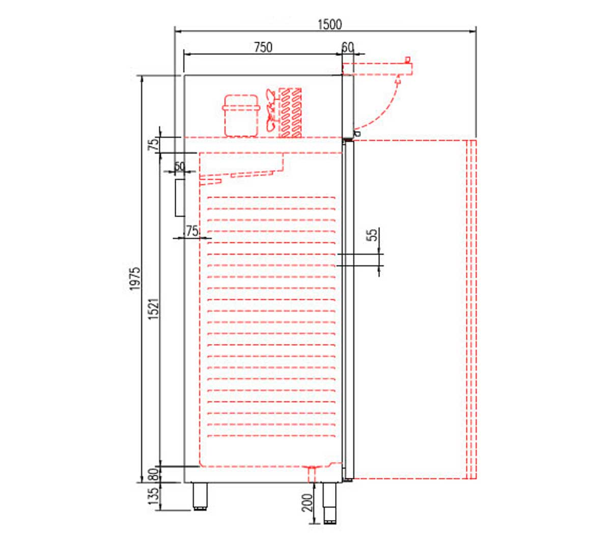 Puertas de apertura reversible con sistema de cierre automático y burlete magnético (permanece abierta al superar los 90° de apertura).