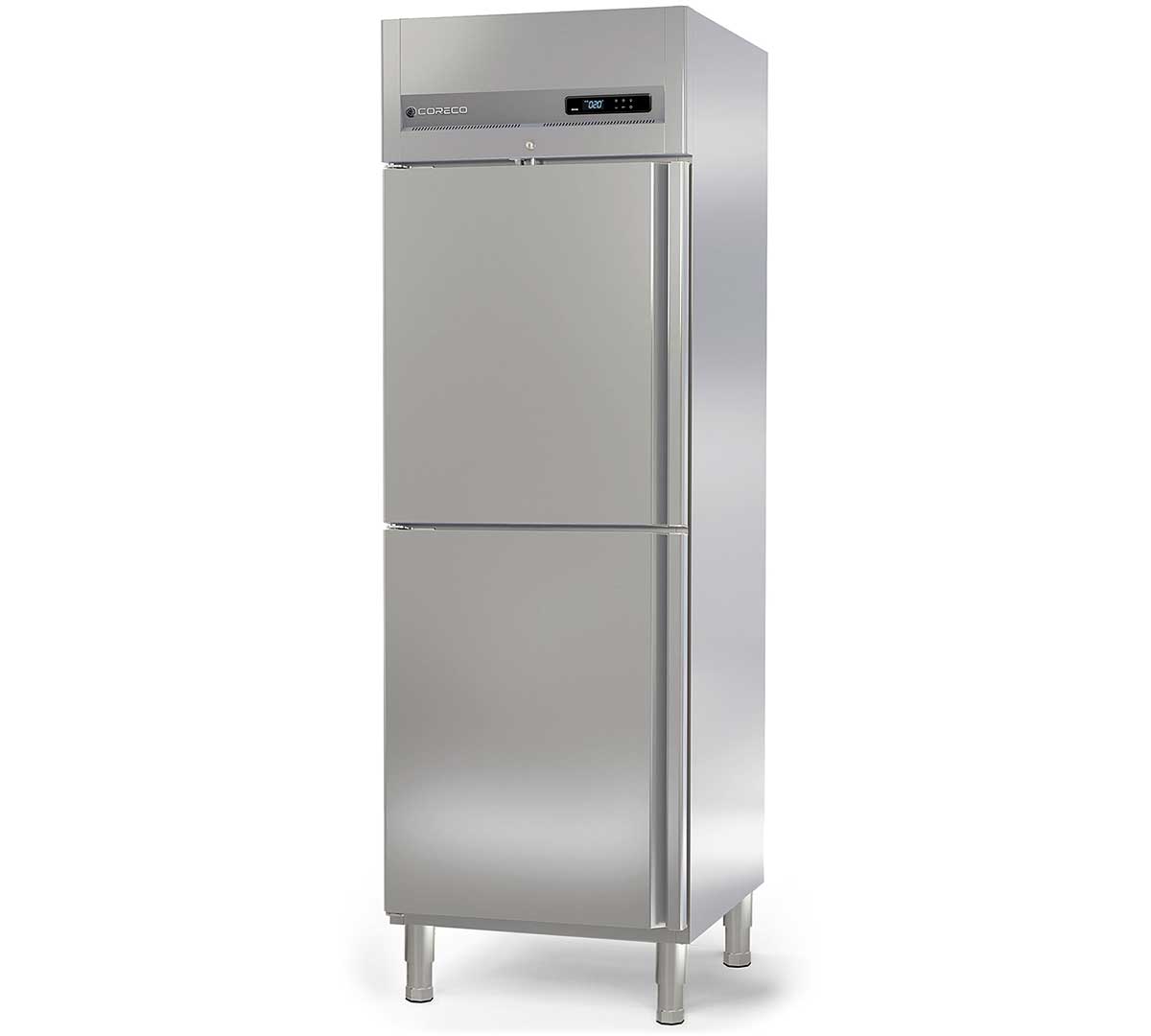 El Armario Congelador ACG-752 de Coreco tiene control digital de temperatura, descarche optimizado, alarma por puerta abierta y alta temperatura de condensación. Incluye 3 parrillas GN 2/1 fabricadas en acero plastificado. Con 2 medias puertas.