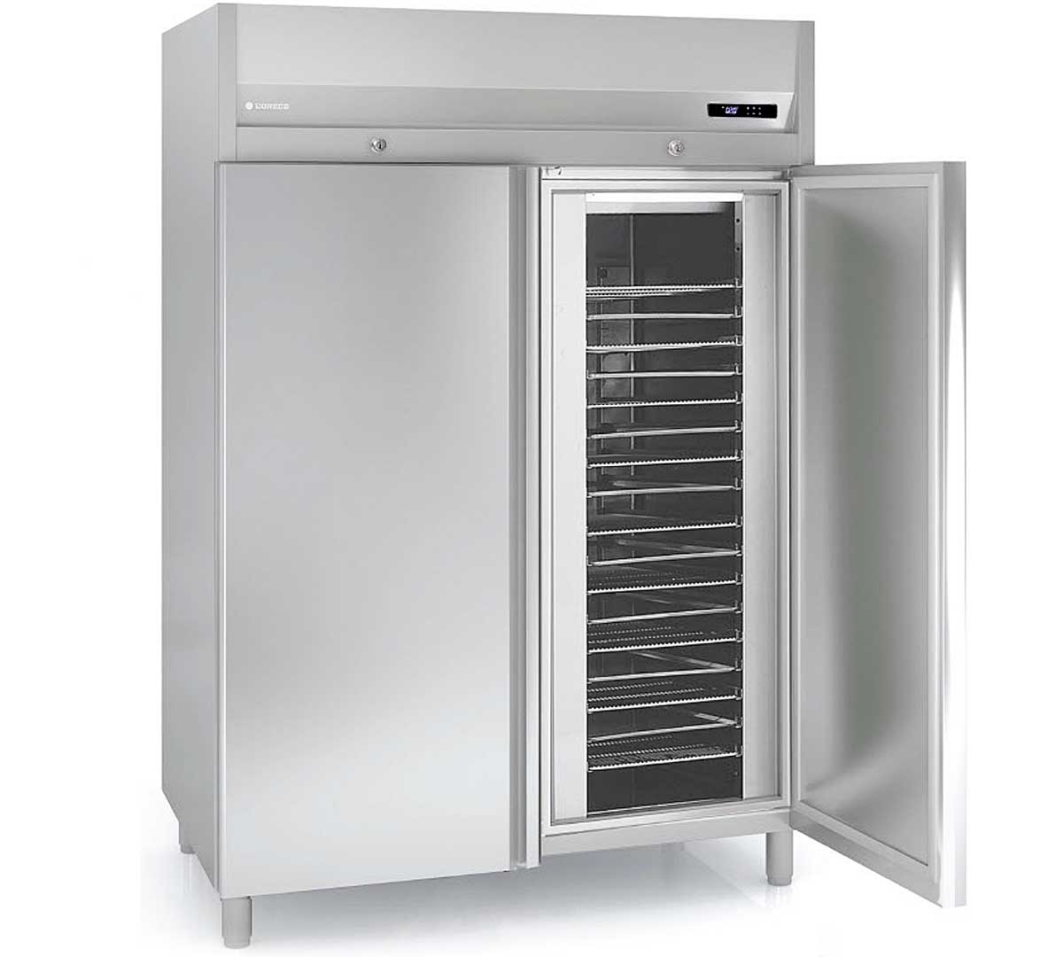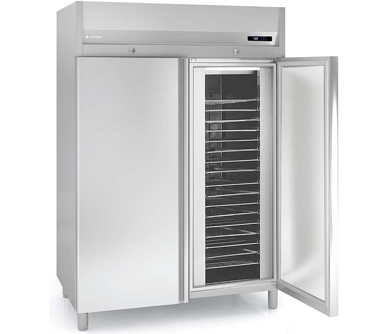 El Armario Congelador Pastelería APC-1002 de Coreco tiene control digital de temperatura, descarche optimizado, alarma por puerta abierta y alta temperatura de condensación. Eficiente gestión del consumo de energía.