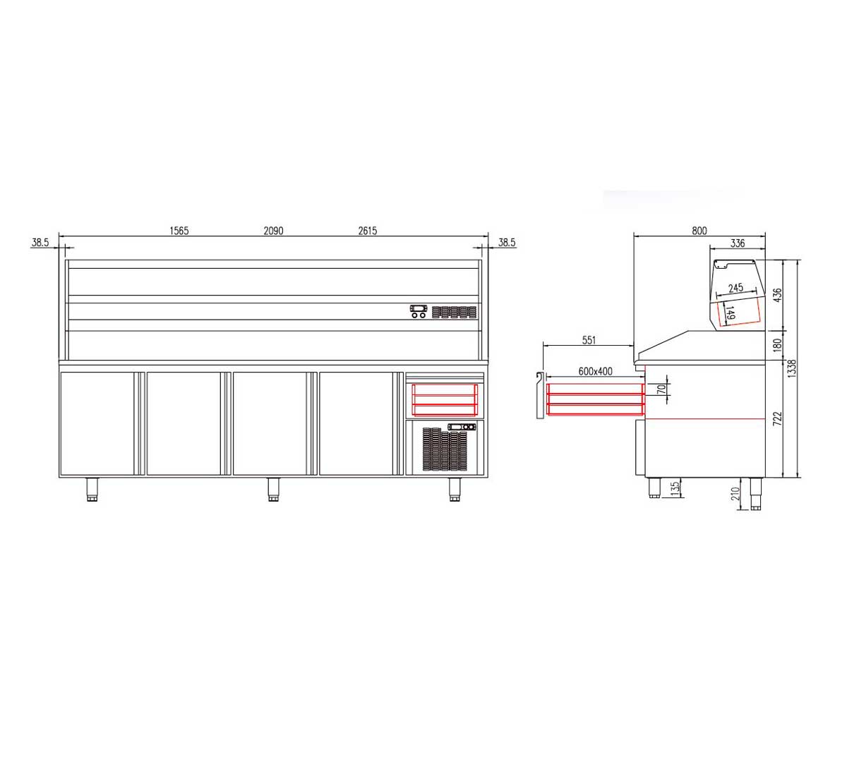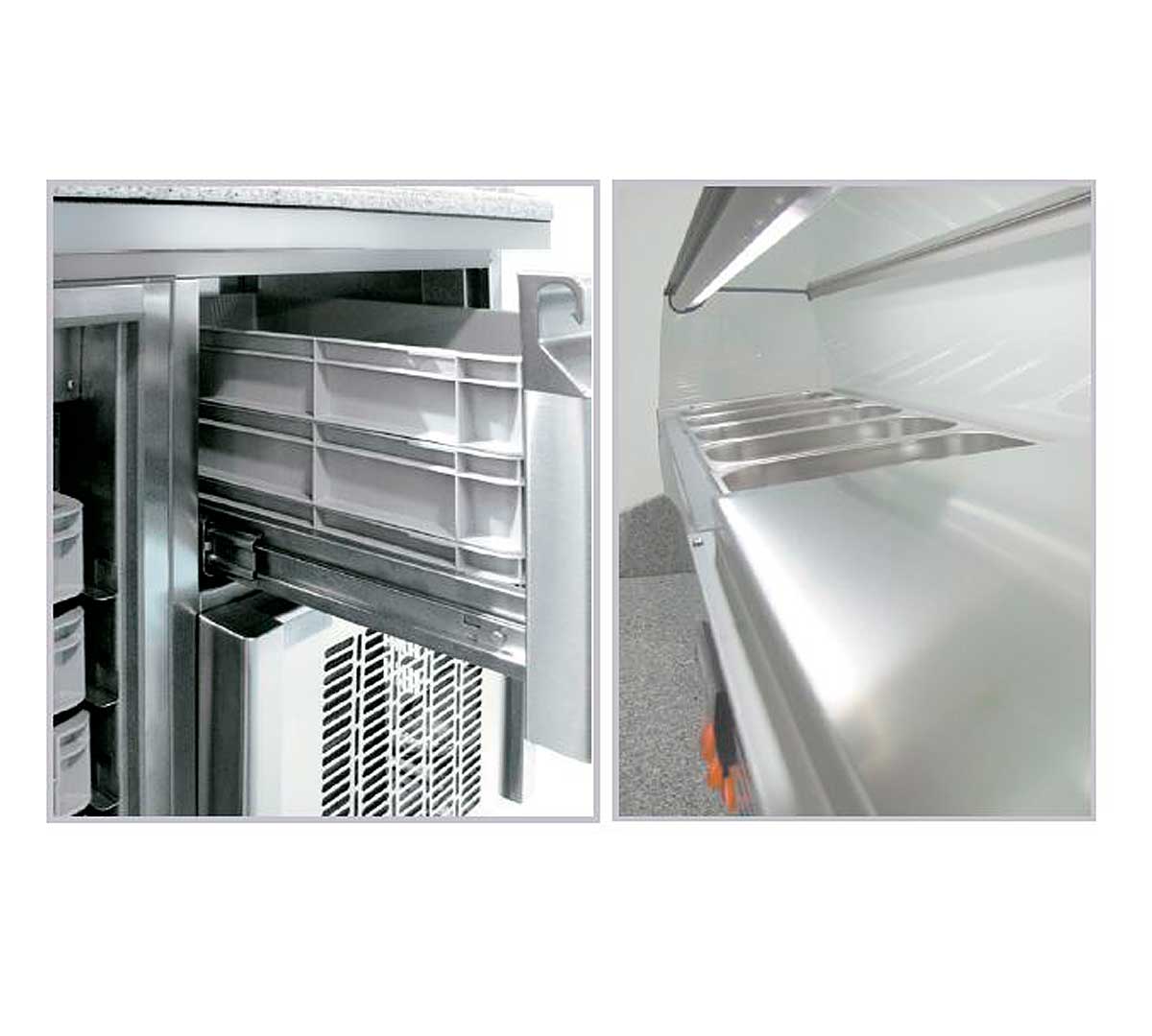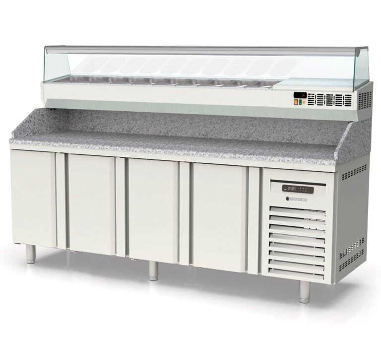 La Mesa Refrigerada Pizza Cajón Neutro de Coreco es de uso profesional con cajón neutro de 3 contenedores, recomendada para la preparación de pizzas.