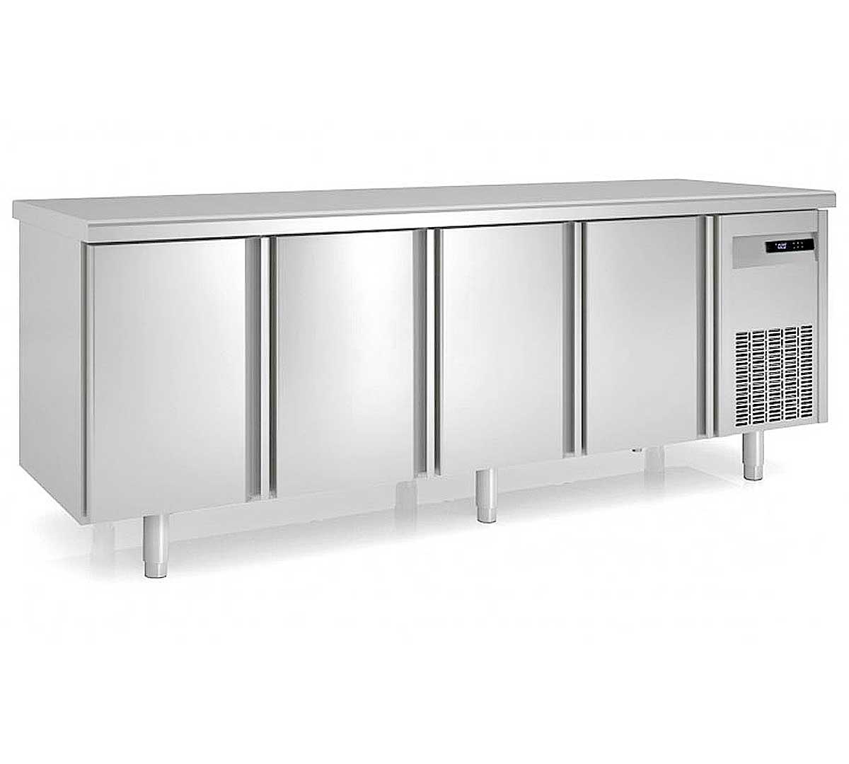 Esta mesa fría es de uso profesional. Pertenece a la gama 700 (GN 1/1). Está disponible en cuatro modelos con diferente capacidad, desde 2 hasta 5 puertas.