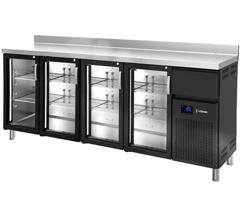 Esta mesa refrigerada es el modelo S-Line de la gama 600 Snack. Tiene puertas opacas y una altura de 85 cm. Está disponible en dos modelos con 2, 3 y 4 puertas.