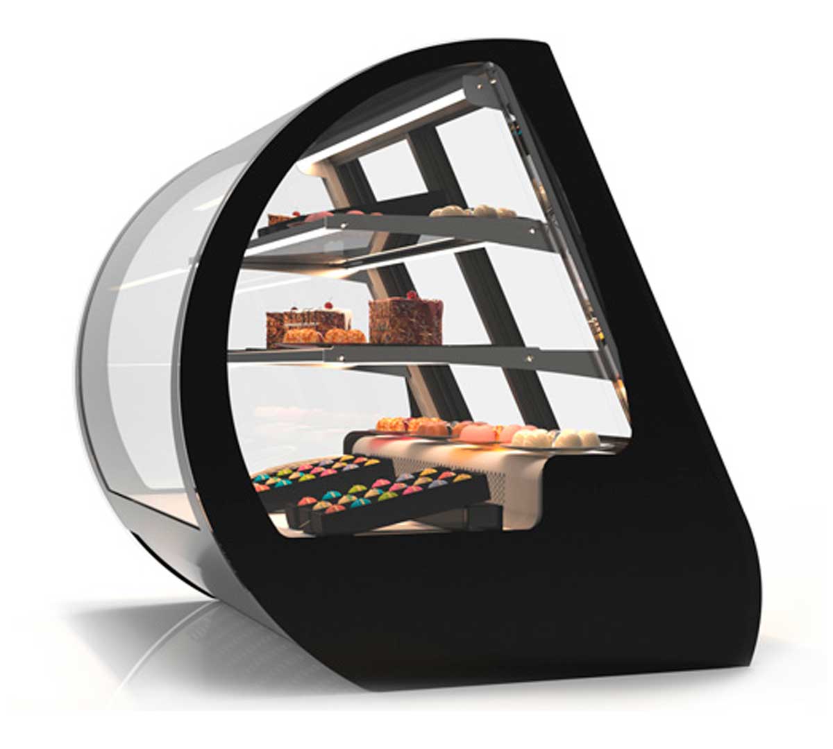 La vitrina Vela tiene un diseño «Cómprame», enfocado al cliente. Es apta para Sándwich, postres, ensaladas, bebidas, snack, frutas.