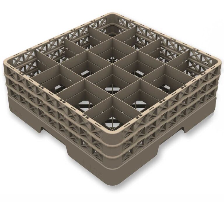 Está diseñado para cestas de vajillas de 50 x 50 cm.