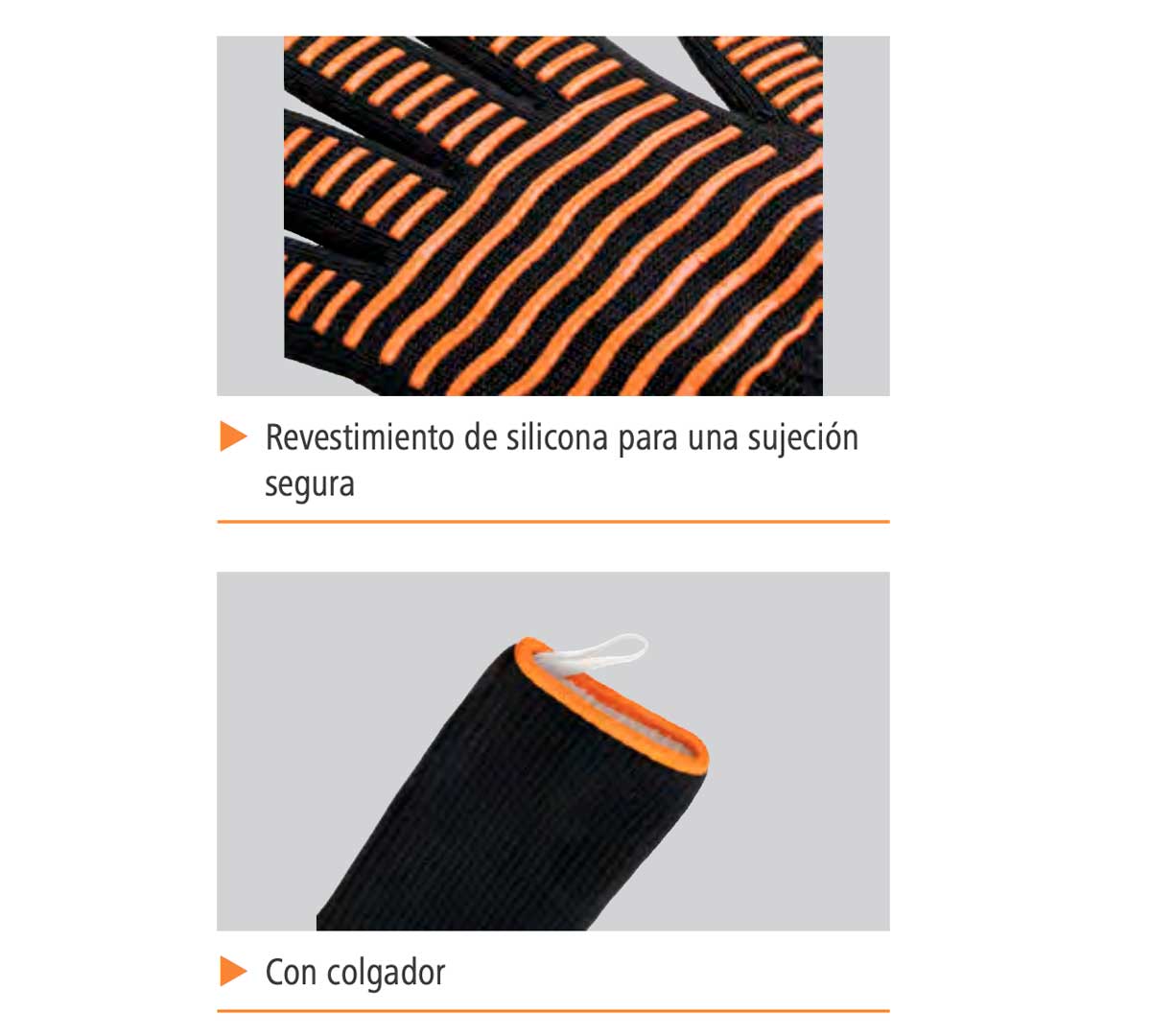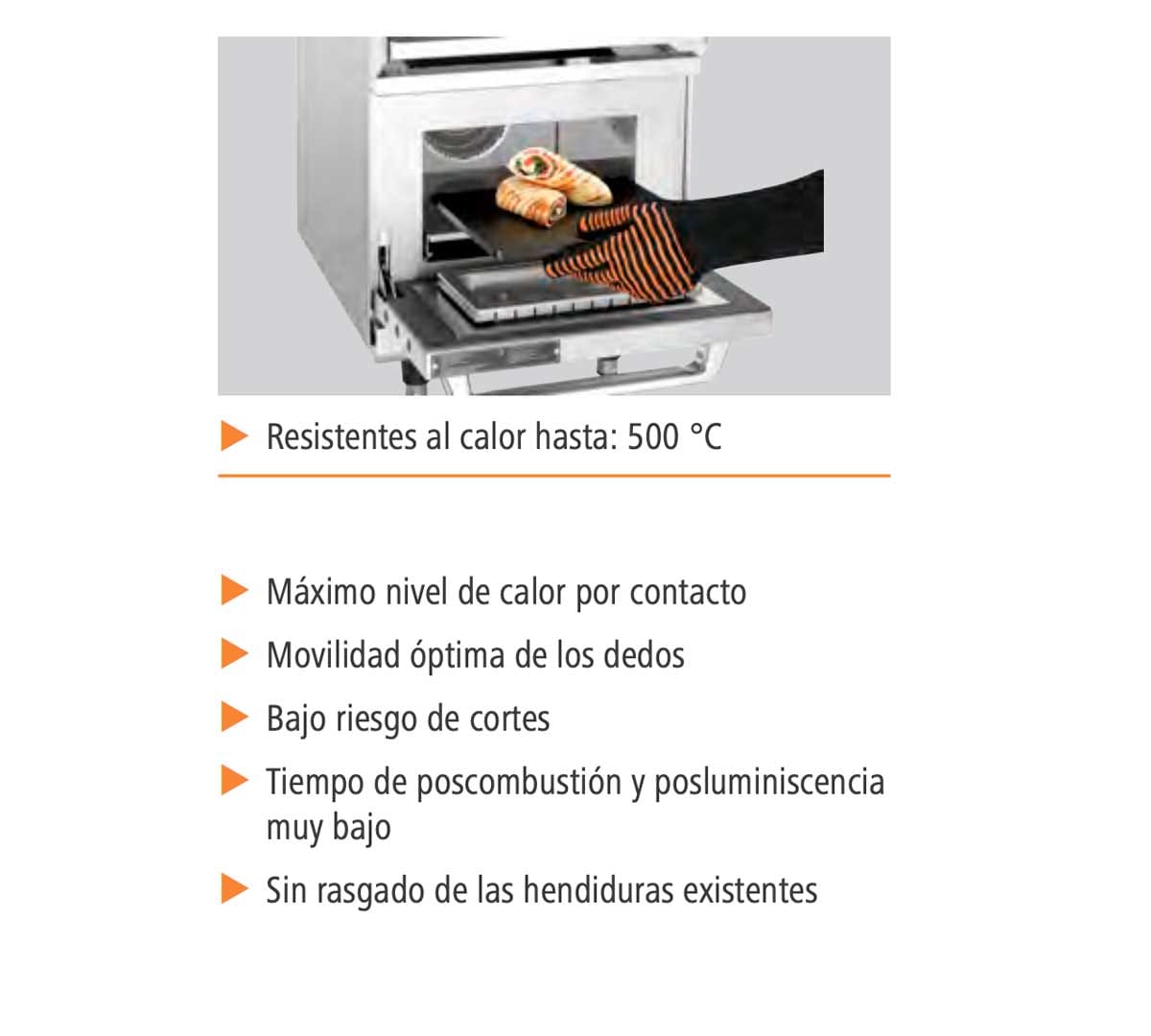Fabricados en aramida (fibras sintéticas resistentes al calor) y revestimiento de silicona para una sujeción segura.