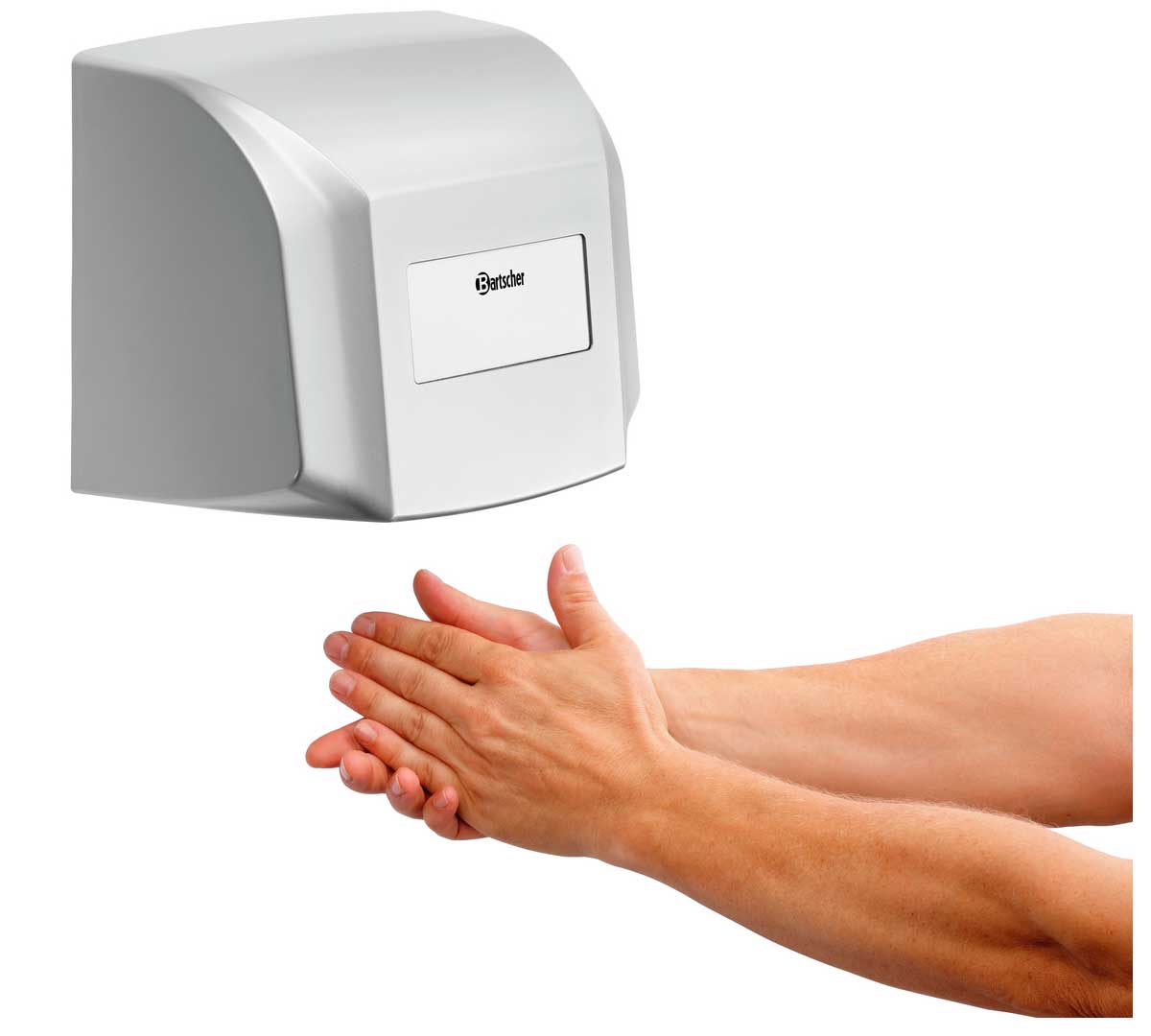 El Secamanos IS 31LS-W de Bartscher es compacto y tiene una boquilla de aire de alto rendimiento que permite un secado rápido y completo de las manos.
