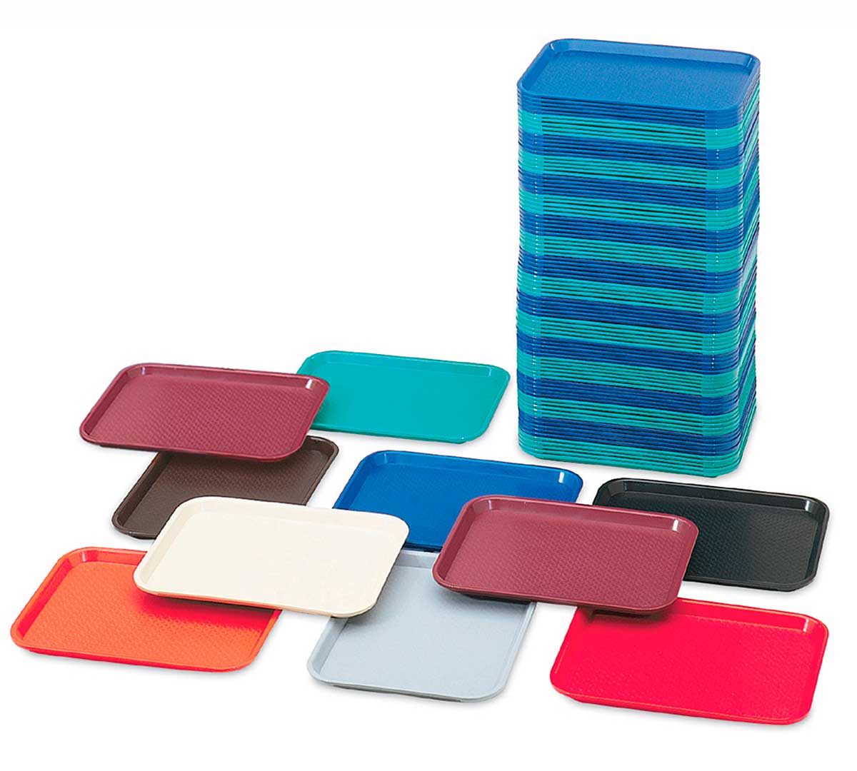 Bandeja fabricada en polipropileno. Con borde grueso reforzado y acabado texturizado. Es apilable y resistente a temperaturas de hasta 86 ºC. Está disponible en 8 colores y en 3 tamaños. Es reciclable.