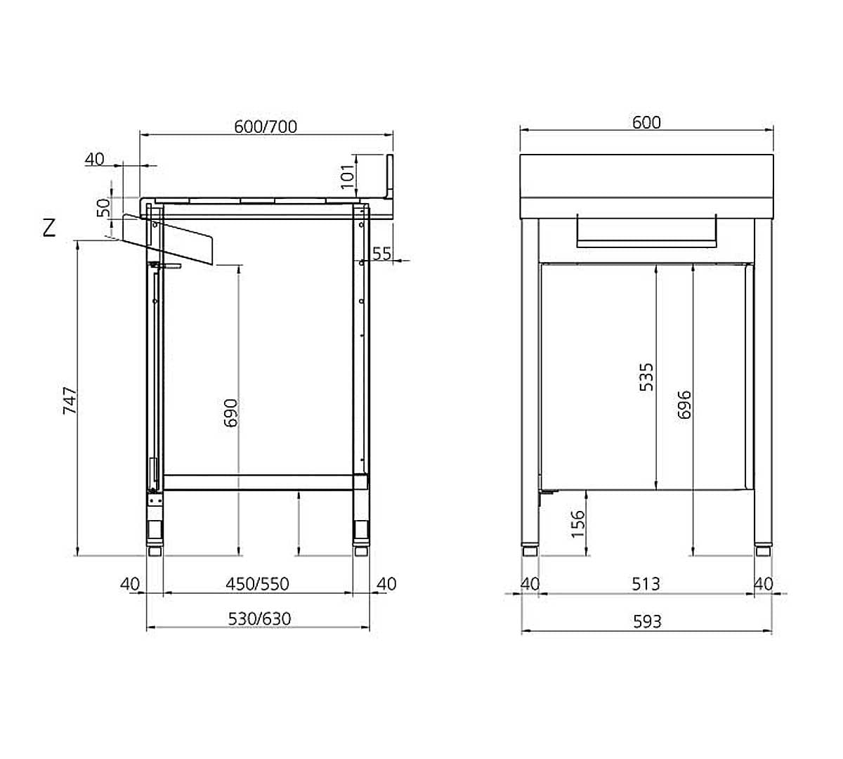 La Mesa Mural sin Base para Desperdicios Gama 700 de Edenox está fabricada en acero inoxidable. Tiene un hueco libre para colocar cubos de desperdicios con un diámetro máximo 46 cm.