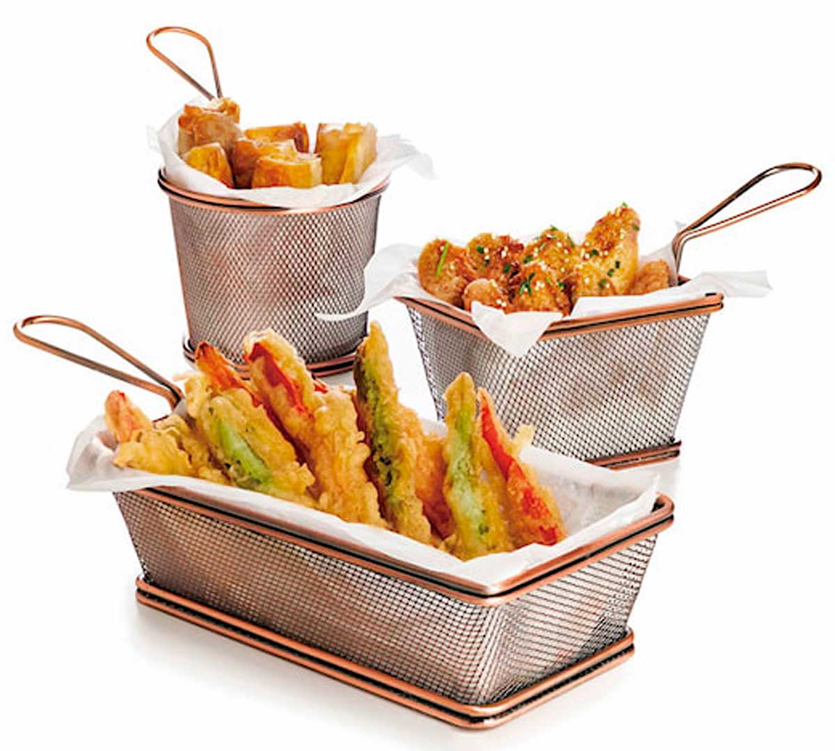El Cestillo Redondo Bronce de Lacor es ideal para el servicio de una gran variedad de tapas y aperitivos.