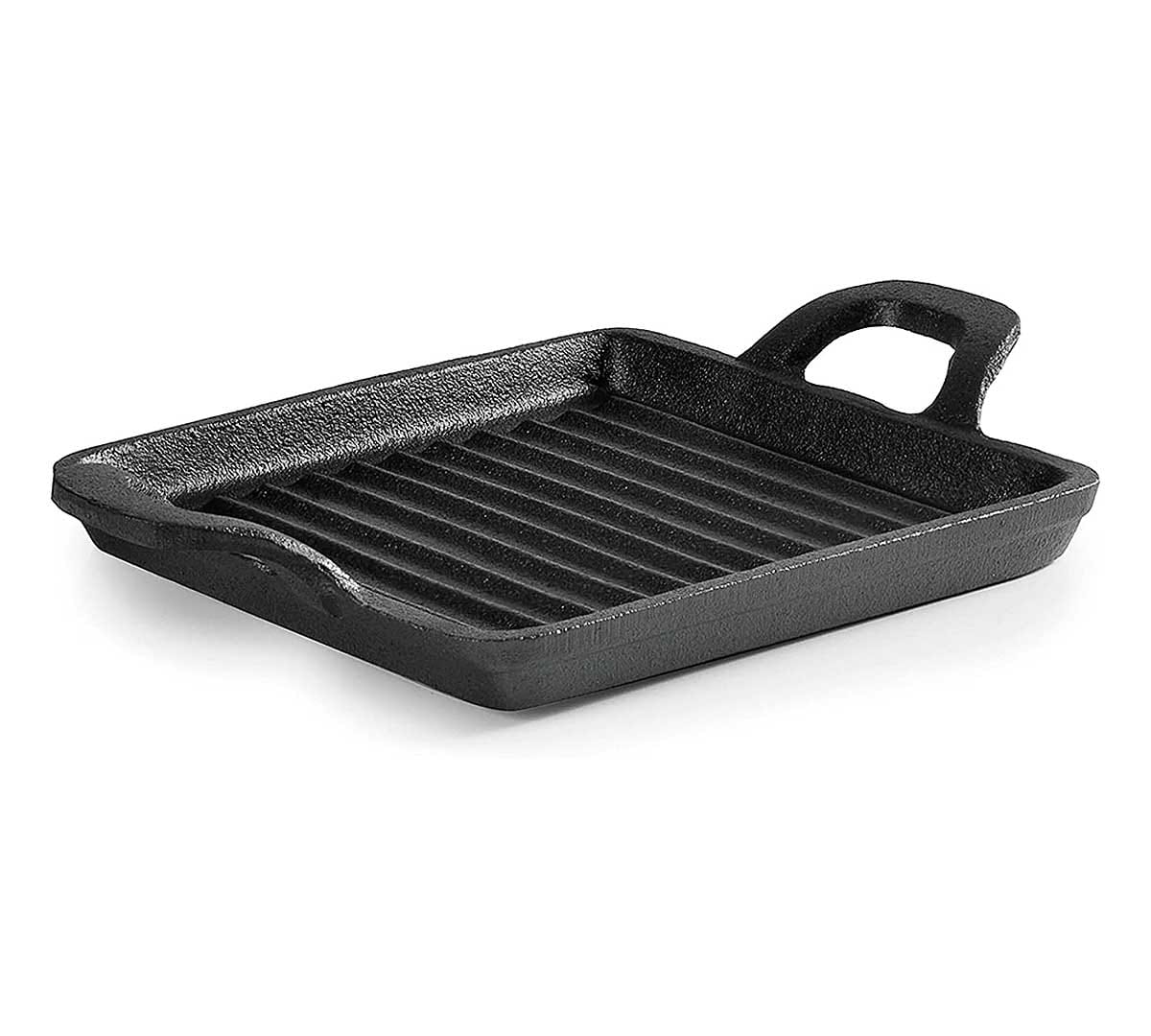 De diseño cuadrado de 14 x 14 cm y 2 asas. Fabricada en hierro fundido, un material que conserva el calor de los alimentos por más tiempo.