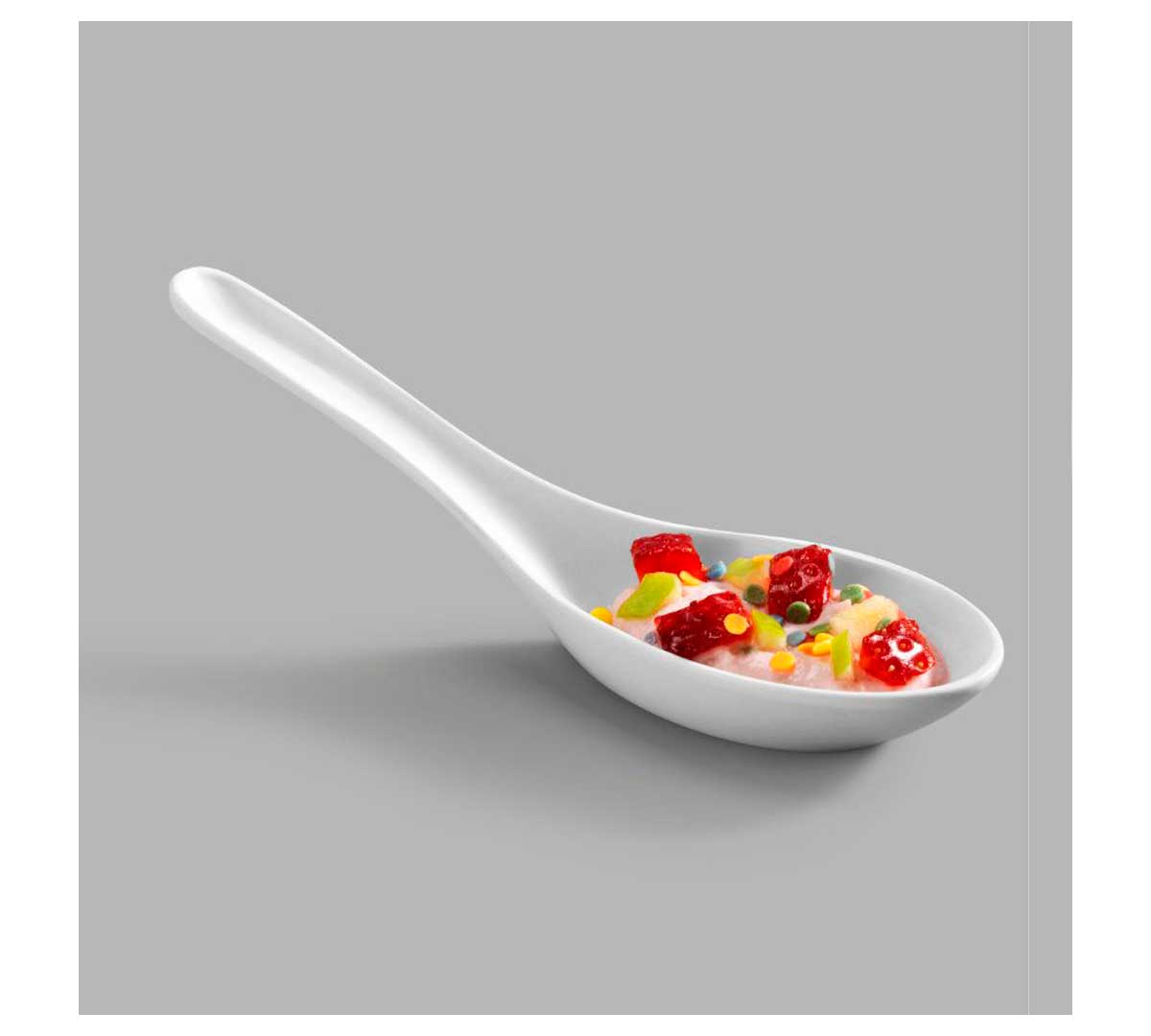 Cuchara degustación blanca fabricada en melamina. Este material es resistente al calor y a la corrosión. Soporta temperaturas entre -20 ºC y 70 ºC. Esta cuchara no está recomendada para utilizarse en el horno, microondas o directamente al fuego.