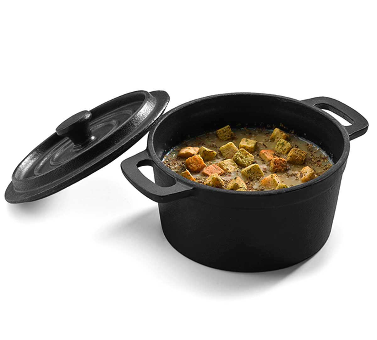 Esta cacerola alta en versión mini tiene la gran ventaja que se puede calentar, saltear, freír y servir en el mismo envase.